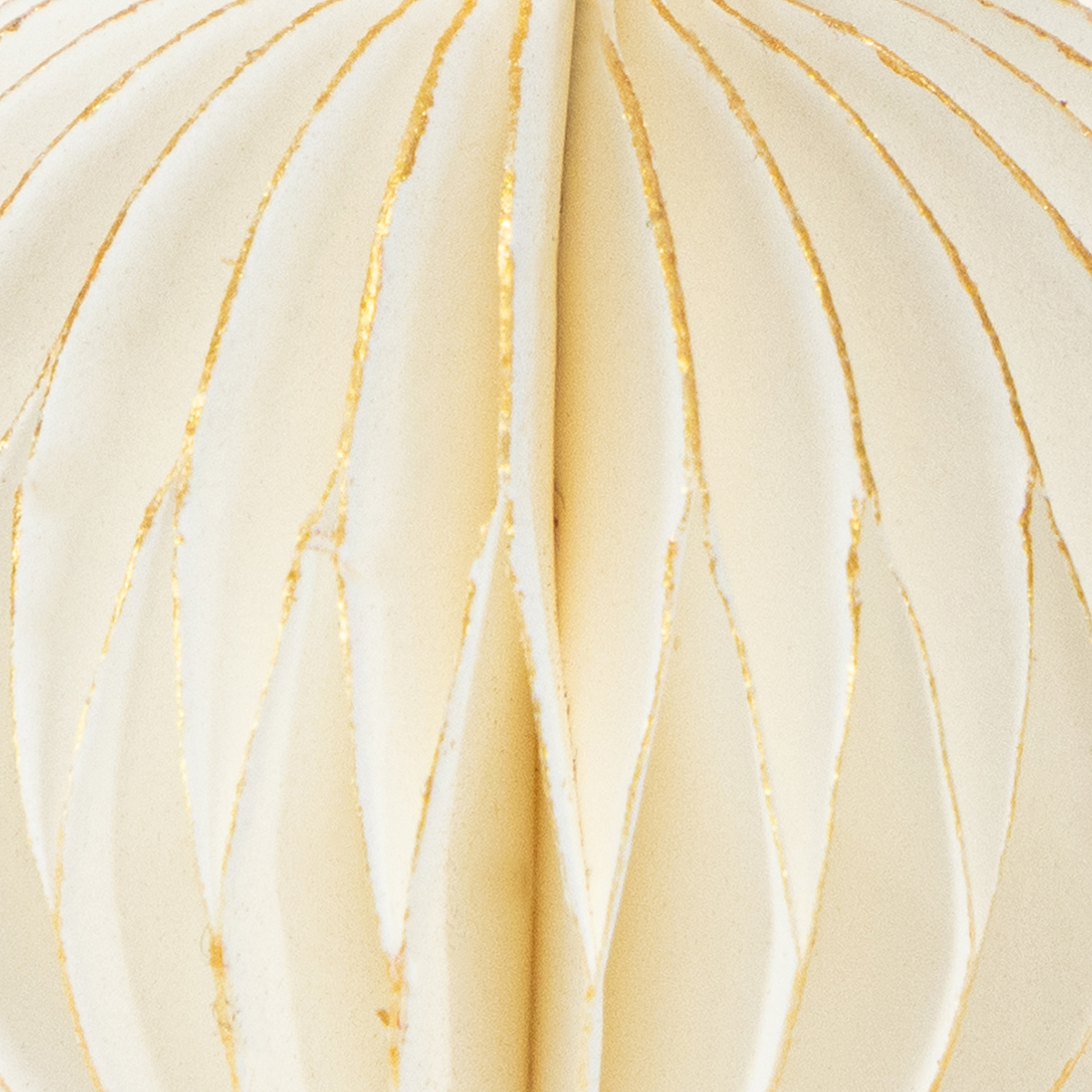 Il bianco brillante, accentuato da raffinati bordi in oro opaco, crea un look complessivo armonioso e senza tempo. Che si tratti di grandi alberi di Natale o di un'affascinante decorazione da tavolo, questa decorazione da appendere in carta a nido d'ape catturerà sicuramente l'attenzione e aggiungerà un tocco di stile.