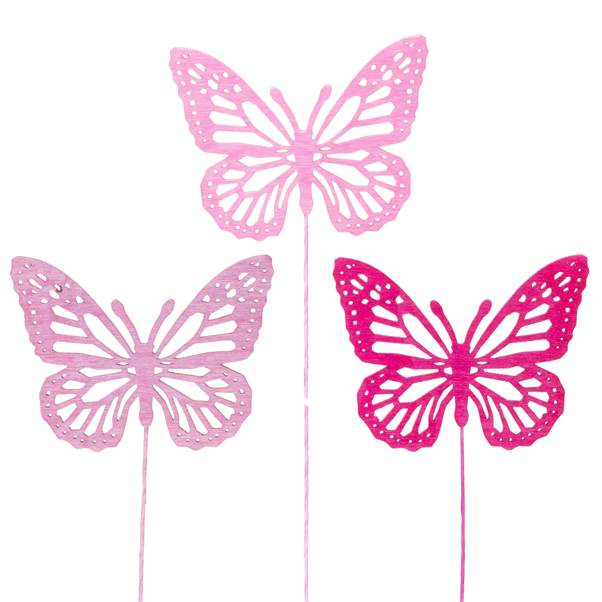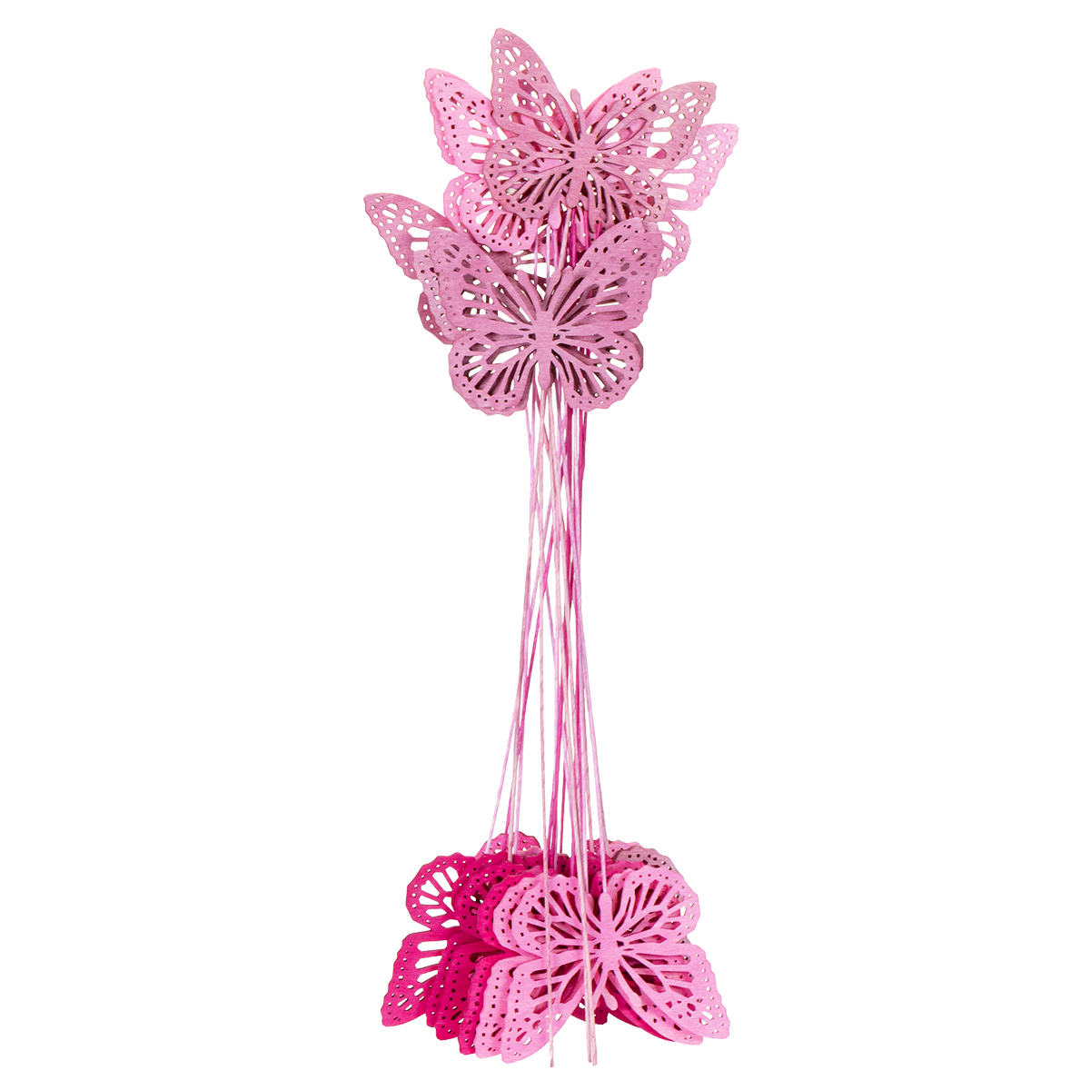 Farfalle decorative su steli come delicati accenti per tavoli e fioriere, 8 cm, 18 pezzi