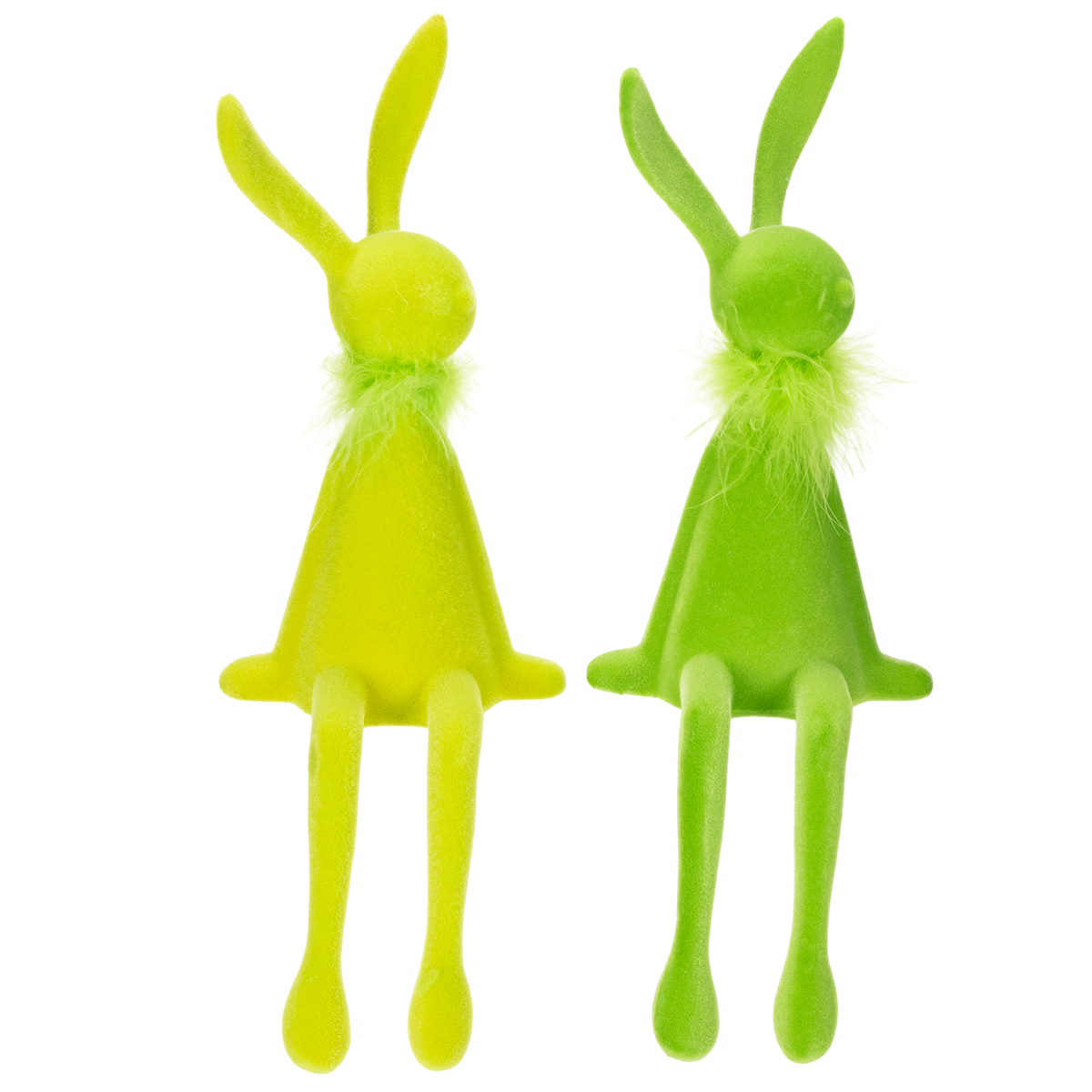 Volete trasformare la vostra casa in un festoso paese delle meraviglie primaverile? Questi incantevoli coniglietti pasquali, perfetti da appendere alle mensole, faranno al caso vostro in un batter d'occhio! Questo duo nelle fresche tonalità del verde non solo porta la gioia pasquale in casa, ma illumina anche qualsiasi soggiorno. Che siano su una mensola, sul davanzale o come centrotavola sul tavolo da pranzo, queste figure decorative in velluto floccato conferiscono al vostro arredamento un tocco moderno e giocoso. E la parte migliore? Il delicato boa di piume aggiunge quel tocco speciale: un vero colpo d'occhio!