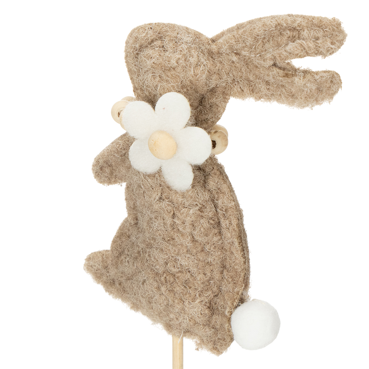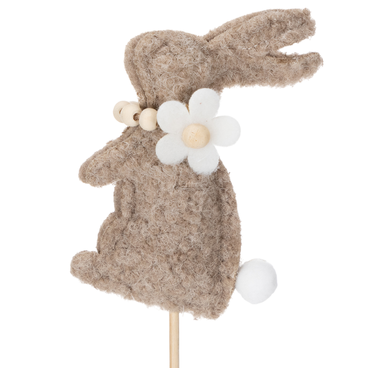 Questa decorazione a forma di coniglietto pasquale è un vero gioiello per gli amanti della decorazione creativa. Le figure sono realizzate in feltro di alta qualità in una calda tonalità marrone che emana naturalezza e intimità. I dettagli incantevoli, come il delicato fiore e la piccola coda soffice, conferiscono ai coniglietti un fascino speciale. Il robusto bastoncino facilita la disposizione dei coniglietti in vasi, fioriere o composizioni floreali. Chi preferisce il design minimalista o scandinavo adorerà lo stile sobrio ma espressivo di queste figure.