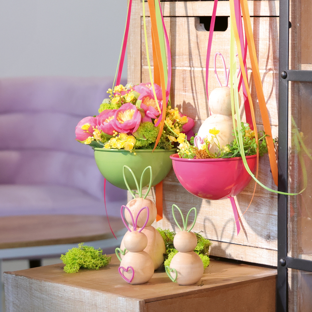 La combinazione del corpo in legno e delle delicate orecchie in filo metallico dai colori vivaci crea un contrasto sorprendente. Perfetto per chi cerca un'idea regalo creativa, sia per i primi ospiti della primavera che come dolcetto pasquale. La confezione contiene quattro figure, permettendoti di dare libero sfogo alla tua creatività nella decorazione.