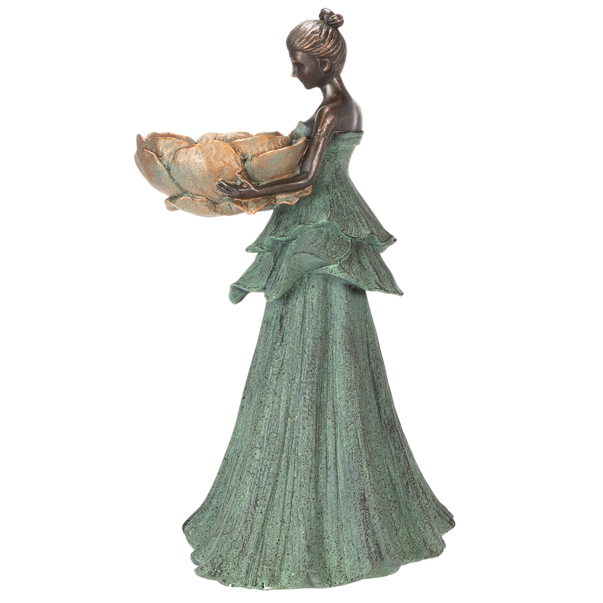 Figura femminile con ciotola di fiori, statua decorativa per l'arredamento estetico di interni e giardini, 55 cm