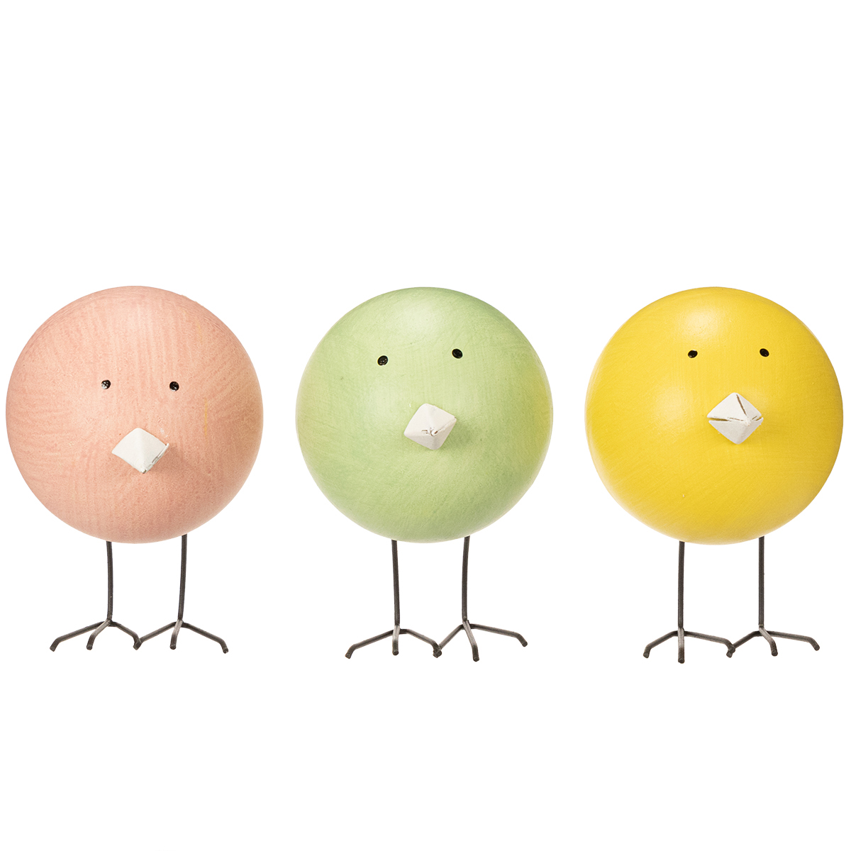Cerchi un modo intelligente per aggiungere un tocco giocoso e allegro alla tua casa? Le nostre statuette decorative rotonde a forma di pulcino illumineranno all'istante qualsiasi stanza. Che si tratti di graziose decorazioni primaverili sulla tavola da pranzo, di un'aggiunta colorata a una tavola festiva o di un dolce colpo d'occhio nella cameretta di un bambino, queste tre piccole statuette in giallo, rosa e verde porteranno sicuramente un sorriso sul volto di tutti. La combinazione di legno per il corpo e metallo per becchi e zampe conferisce ai pulcini una base robusta e un tocco di design moderno.