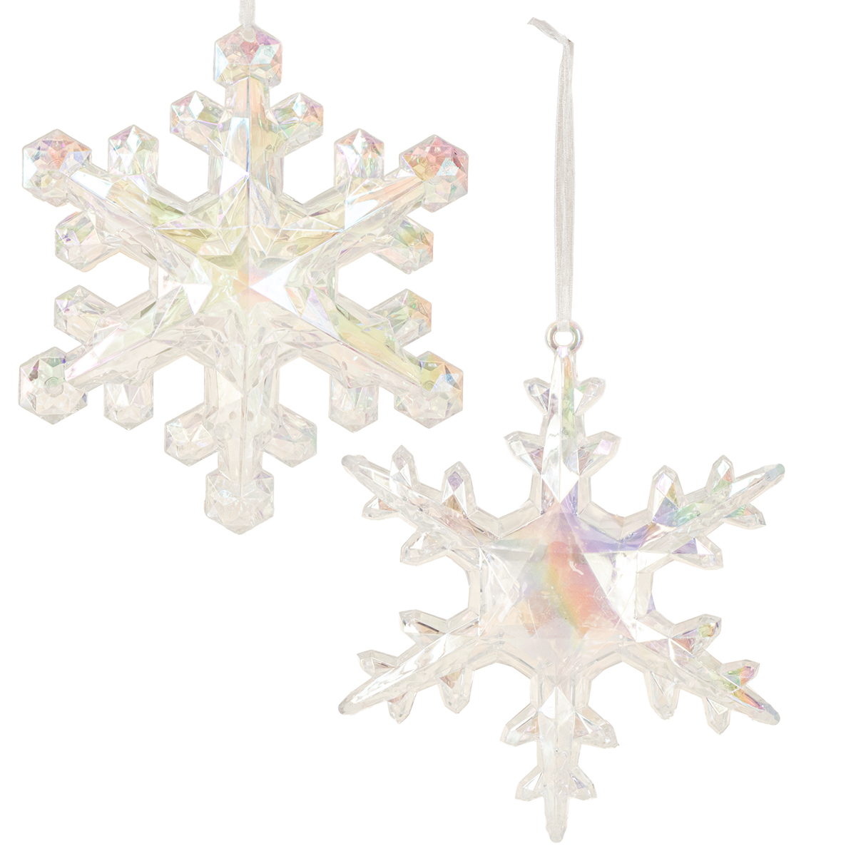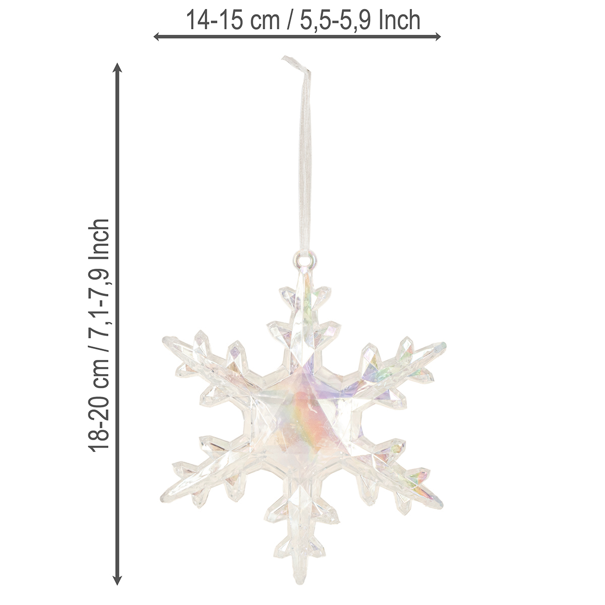 Nome del prodotto: Fiocchi di neve decorativi, decorazione invernale, iridescenti, Ø14–15cm, 2 pezzi