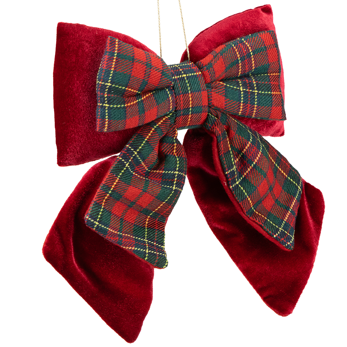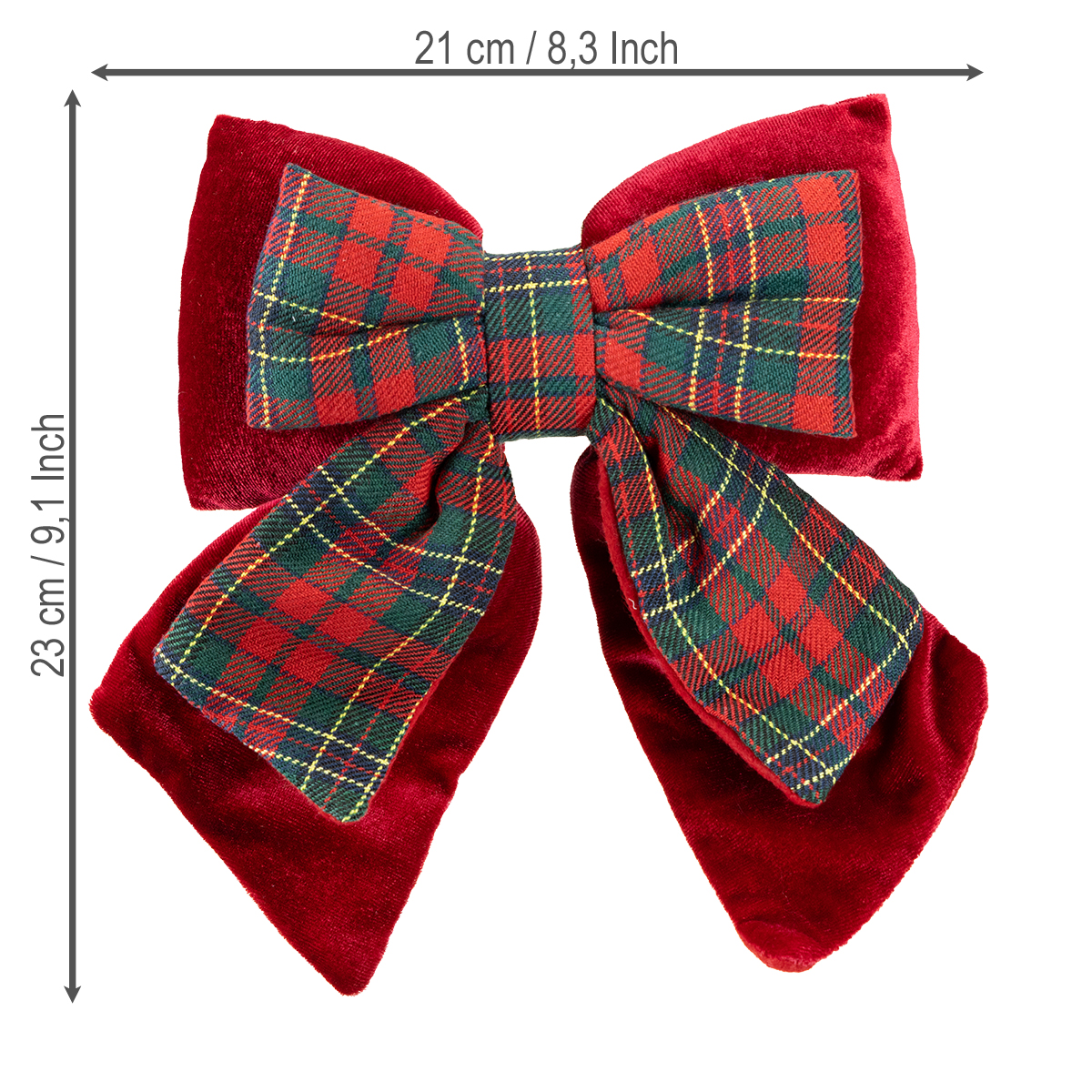 Nome del prodotto: Fiocco in velluto scozzese rosso per interni 21×23 cm