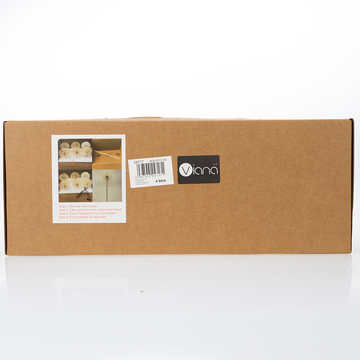 Grazie alla loro struttura robusta e all'altezza di 50 cm, i denti di leone possono essere facilmente integrati in vasi stretti o alti. Sia disposti singolarmente che in combinazione con altri fiori secchi, il dente di leone fa sempre un bell'effetto. Soprattutto per le decorazioni da tavola per occasioni speciali, come matrimoni o feste di compleanno, conferiscono un tocco elegante che non mancherà di stupire.