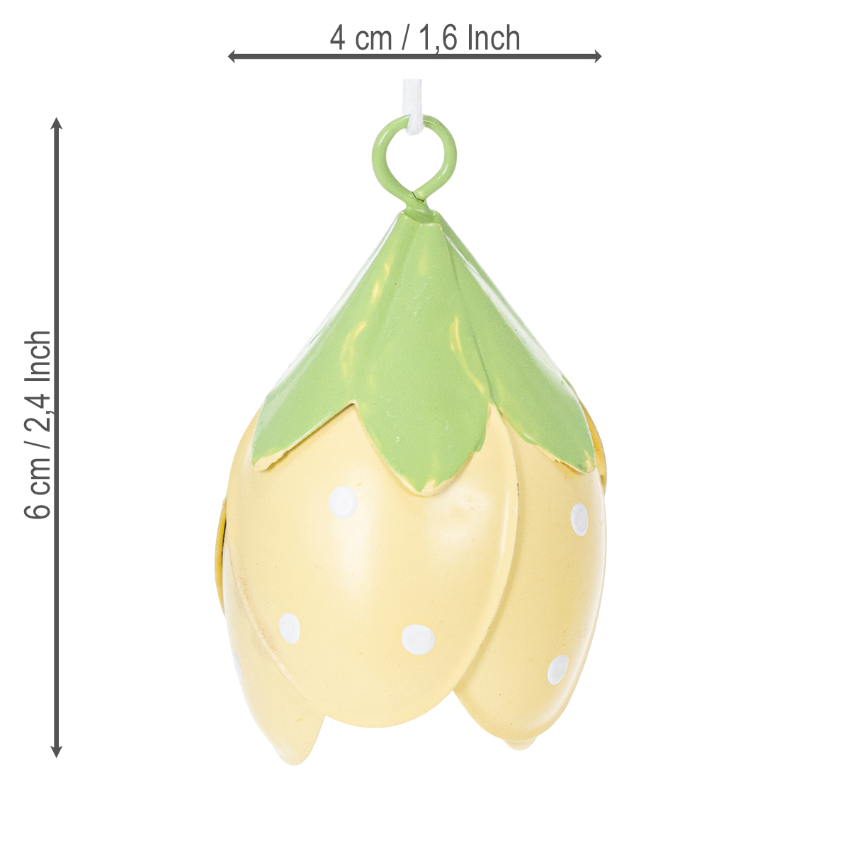 Questi fiori in metallo pendenti sono ideali per chi ama le decorazioni giocose e romantiche. Con un'altezza di 6 cm e un diametro di 4 cm, non sono troppo grandi, ma catturano comunque l'attenzione con stile. I delicati colori giallo e verde creano un look fresco e si integrano magnificamente in una varietà di stili, dallo stile country e shabby chic alle composizioni floreali classiche. Grazie alla loro struttura in metallo di alta qualità, i fiori sono robusti e adatti sia per interni che per esterni. Sono particolarmente affascinanti in un ingresso, dove accolgono gli ospiti con un tocco di allegria.