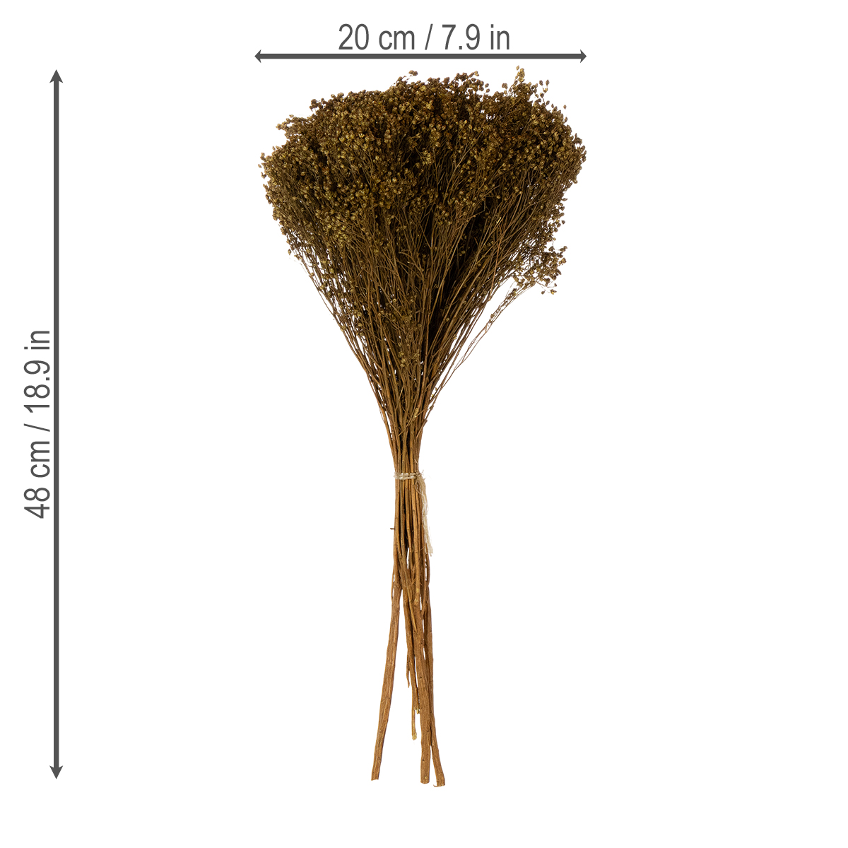 Riceverete la ginestra Bloom essiccata e tinta in un mazzo del peso di circa 150 grammi. La lunghezza dei rami varia tra 40 e 48 centimetri. Il diametro del mazzo è di circa 20 centimetri.