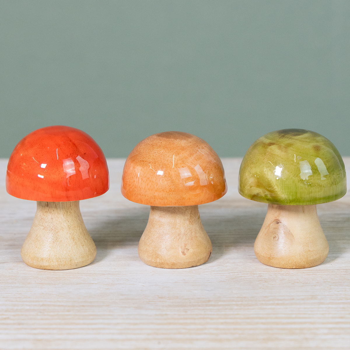 Decorazione autunnale con funghi in legno: accenti colorati per ogni stanza