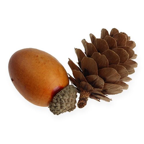 Se vuoi decorare una tavola apparecchiata in autunno, prendi questo mix di ghiande artificiali e coni reali nella rete! Le ghiande decorative sono realizzate interamente in plastica di alta qualità e vedono gli originali simili a quelli confusi. I veri cappucci di ghiande si attaccano alle noci artificiali per rendere perfetta l'illusione. Puoi quindi cospargere il mix deco liberamente su un centro tavola o persino metterlo in risalto in una ciotola.Puoi anche distribuire le noci e le pigne artificiali sulle balle di una pianta d'appartamento o trasformarle in una corona da tavolo. Non limitarti solo alla stagione autunnale, ma usa anche le noci per una decorazione natalizia e decorale con un davanzale o un piatto decorativo. Se avvolgi un filo intorno alle ghiande e ai coni, puoi anche appenderli come decorazione dell'albero di Natale o decorazione della finestra