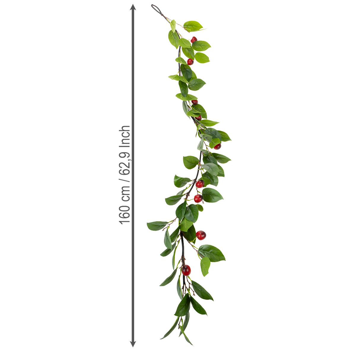 Grazie al suo design flessibile, puoi drappeggiare, avvolgere o disporre la ghirlanda a tuo piacimento. Il materiale robusto le garantisce di mantenere la sua forma, mentre il design vivace con ciliegie e foglie artificiali crea un aspetto autentico. Completa la tua decorazione con accessori coordinati come vasi, fiori artificiali o corone per creare un effetto complessivo armonioso.