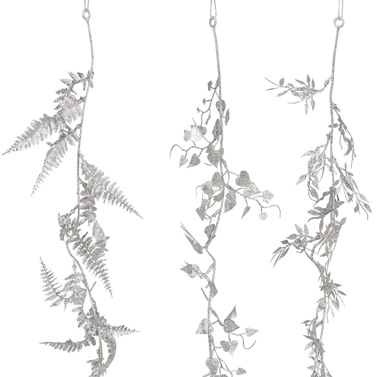 Nome del prodotto: Ghirlanda artificiale Ghirlanda di foglie di felce glitter argento 180 cm 3 pz