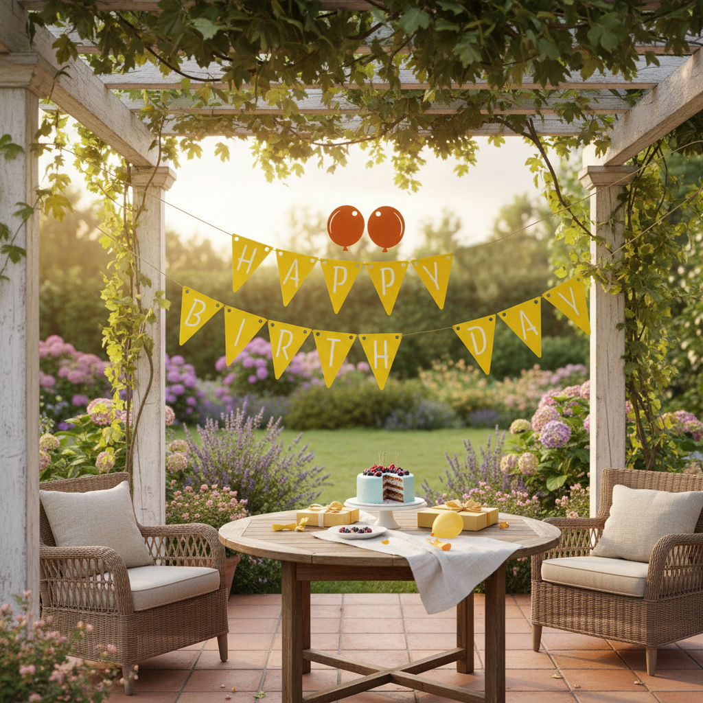 Appendi la bandierina su un filo come una scritta o dividi le parole su due livelli per la decorazione murale del tuo compleanno.