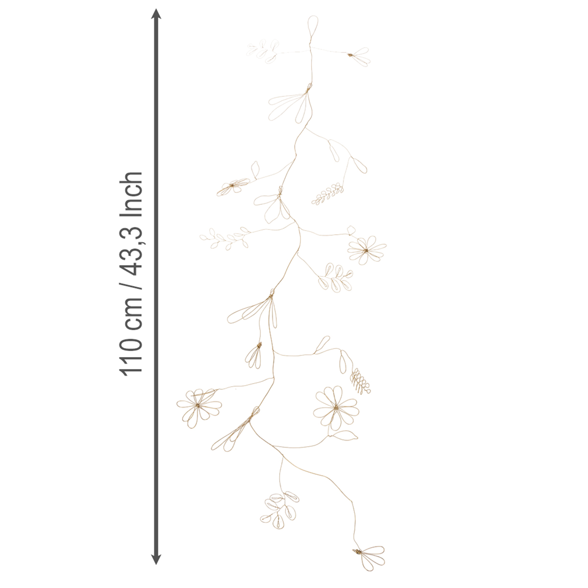 Ghirlanda decorativa floreale in metallo, filo per ghirlanda di fiori, decorazione estiva, decorazione da parete, oro, 110 cm