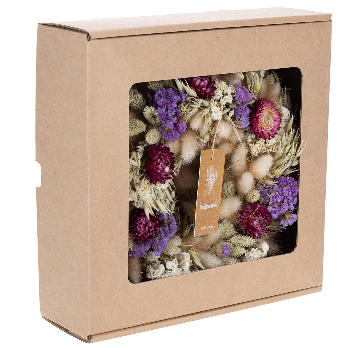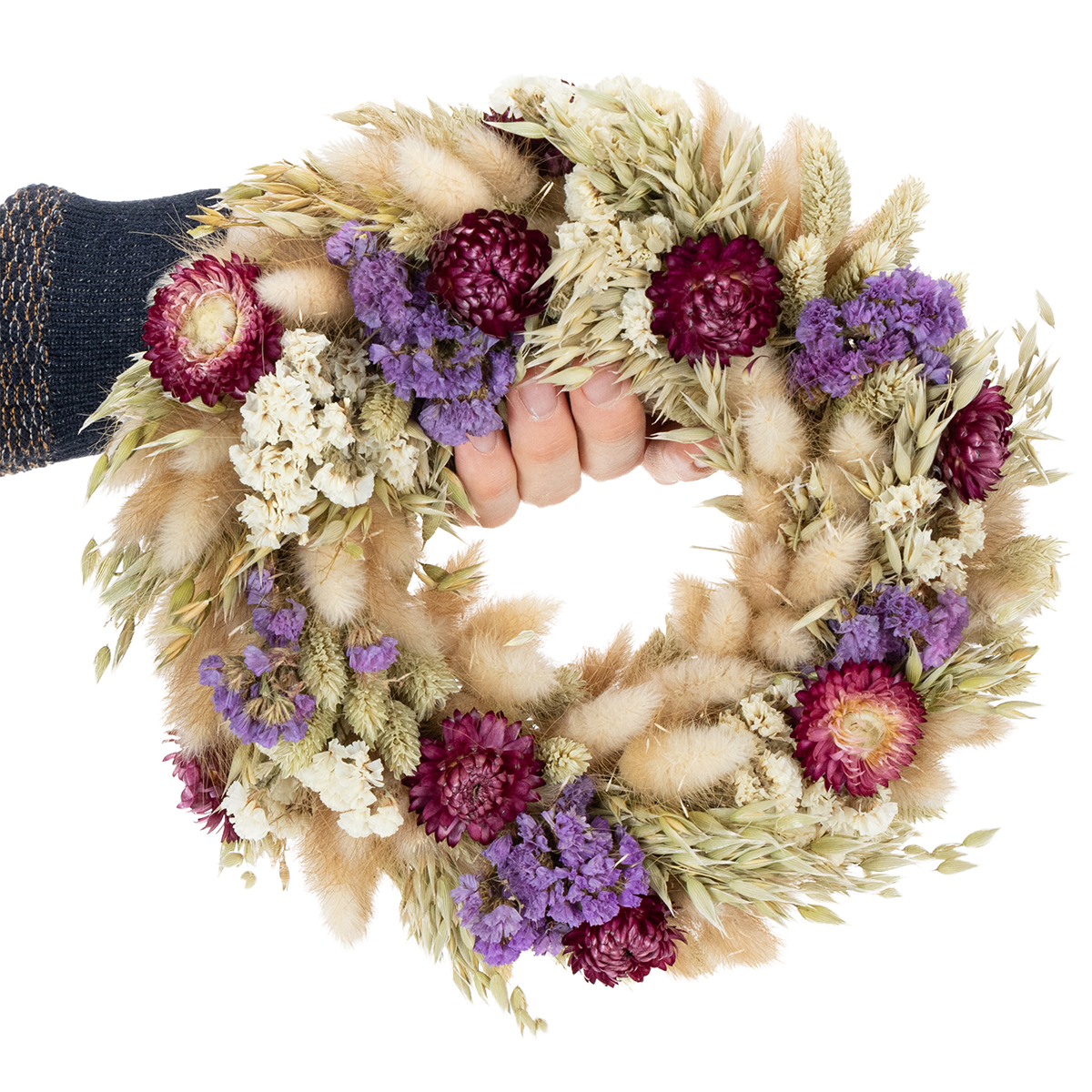 Con un diametro di 25 centimetri, questa ghirlanda di fiori secchi si integra armoniosamente in qualsiasi ambiente senza risultare ingombrante. I fiori accuratamente selezionati e i materiali naturali – dalle erbe vellutate ai delicati fiori nei toni del beige, lilla, bordeaux e crema – le conferiscono un fascino unico. Dal romantico al moderno, questa ghirlanda di fiori secchi realizzata a mano si adatta a diversi stili e sprigiona sempre un'eleganza naturale.