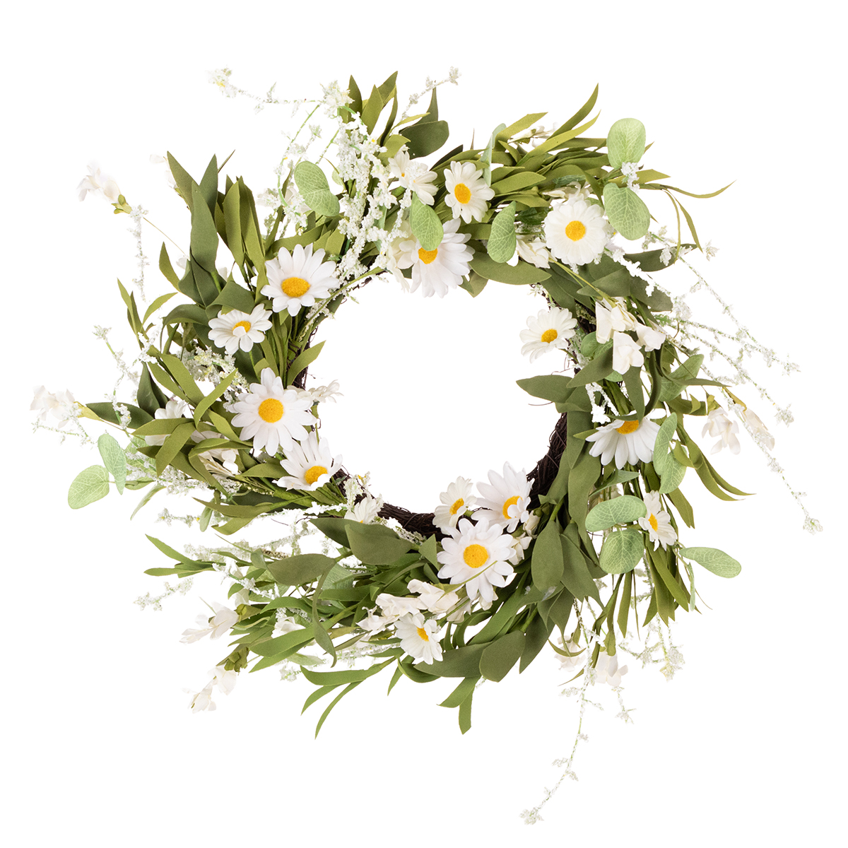 Ghirlanda di margherite artificiali, dall'aspetto naturale e resistente, per la decorazione di porte e pareti, 55 cm