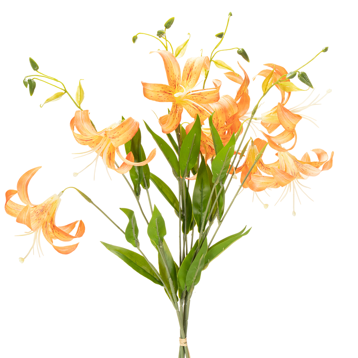 Cerchi un tocco di eleganza per il tuo matrimonio o evento? I nostri gigli artificiali di alta qualità offrono la perfetta combinazione di bellezza naturale e durevolezza pratica. Questi gigli artificiali colpiscono per il loro aspetto realistico e i delicati fiori d'arancio: un vero colpo d'occhio! Con un'altezza di 77 cm, questi fiori artificiali possono essere integrati senza sforzo in splendide composizioni floreali, sia come centrotavola su un tavolo, in un grande vaso da terra o come parte di una lussureggiante composizione floreale. Che si tratti di un matrimonio, un compleanno o un evento aziendale, trasformeranno qualsiasi stanza in un istante. Sono anche una scelta fantastica come regalo o come decorazione da tavola. Ti stai chiedendo se sembrano così veri? Assolutamente! La loro qualità e l'attenzione ai dettagli li fanno sembrare quasi appena raccolti. Provali e aggiungi un tocco di eleganza alla tua vita quotidiana!