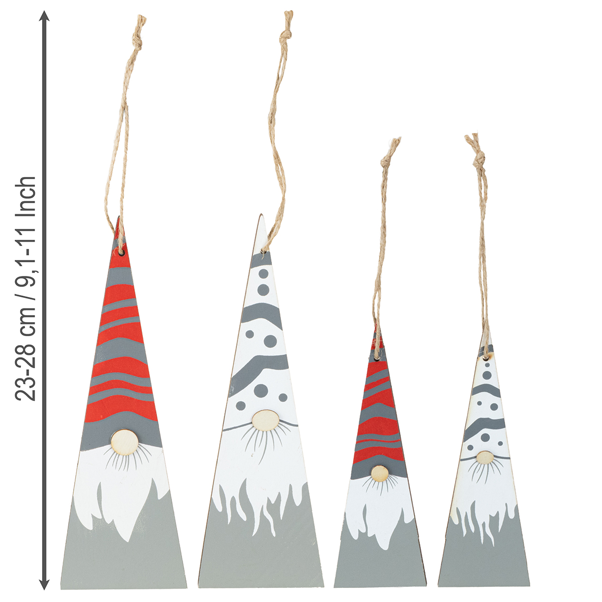 Gnomi natalizi in legno da appendere grigio rosso 15/19,5cm 8 pezzi