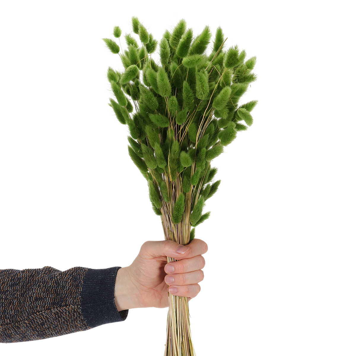 Quest'erba Lagurus essiccata, di un verde oliva, aggiunge un tocco di vivacità a qualsiasi composizione di fiori secchi in stile boho. Il verde brillante di quest'erba essiccata è uno dei colori più di tendenza che si possano trovare in un'ampia varietà di composizioni floreali secche.