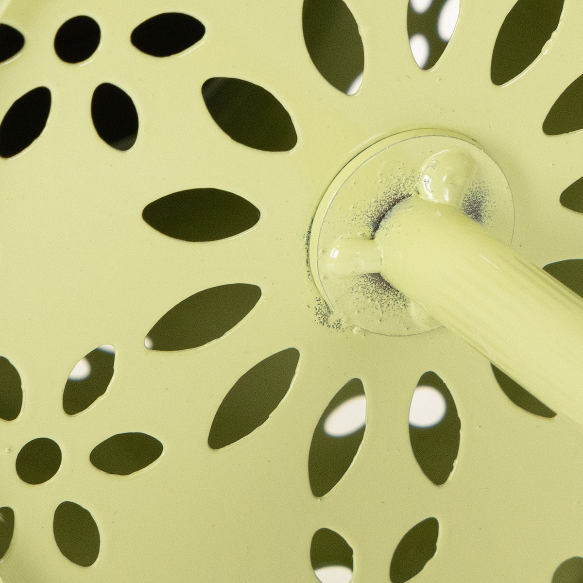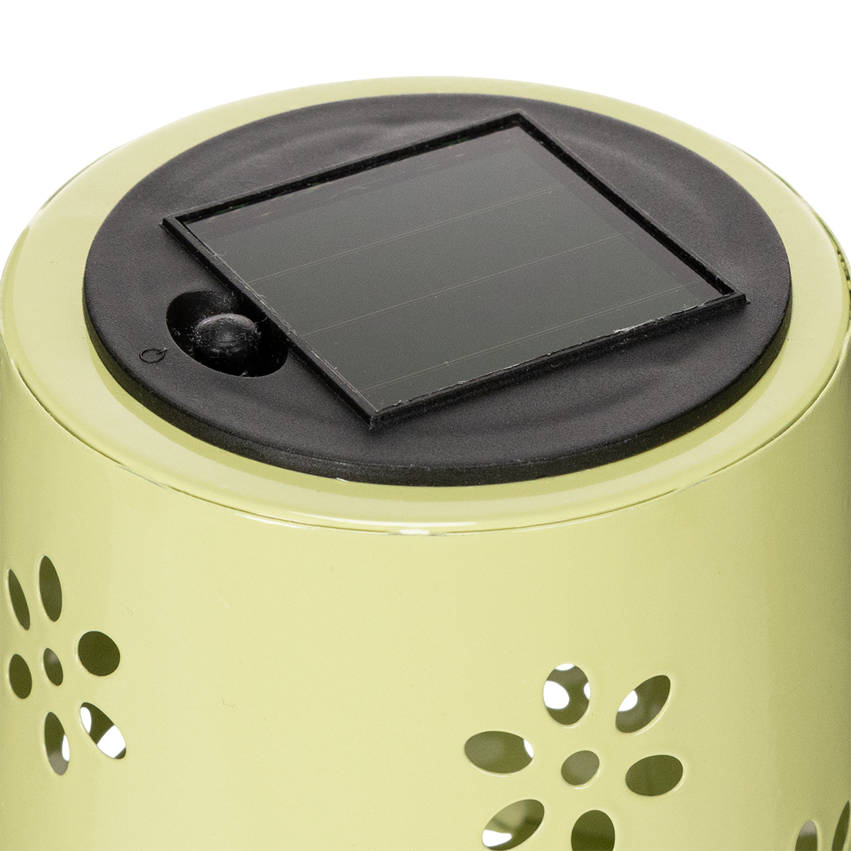 La combinazione di design romantico e tecnologia moderna rende questa lampada da tavolo solare un elemento di spicco per l'illuminazione esterna. Il delicato motivo floreale, che si riflette sia nel paralume che nella lavorazione artigianale, conferisce alla lampada un tocco giocoso. Soprattutto di sera, quando la luce calda filtra attraverso i motivi intricati, si crea un'atmosfera magica. La tonalità verde aggiunge un tocco naturale che si abbina perfettamente a piante e composizioni da esterno. Ideale per gli amanti della natura e per chi apprezza la sostenibilità: la tecnologia solare ricarica in modo efficiente la batteria AAA ricaricabile inclusa durante il giorno, consentendo alla lampada di illuminarsi automaticamente dopo il tramonto. Completamente senza cavi o fonti di alimentazione esterne! Con un'altezza di 28 cm, la lampada non è né troppo piccola né troppo imponente e si adatta perfettamente a tavoli da giardino, mensole da balcone o tavolini decorativi. Sarebbe splendida anche su un davanzale o su un piccolo sgabello davanti a un gazebo. Grazie al resistente materiale metallico, potrete godervi questa elegante lampada per anni a venire, anche con un uso esterno regolare. Consiglio: questa lampada si integra perfettamente in uno stile rustico o vintage. Se lo desiderate, potete abbinarlo a piccoli vasi di fiori di campo o altri elementi decorativi floreali. Diventerà il fulcro del vostro arredamento estivo!