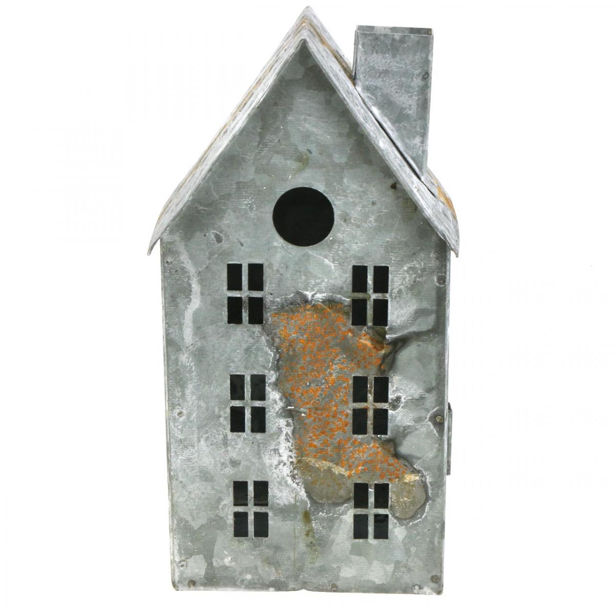 Lanterna casa in metallo shabby chic lavato bianco, ruggine H20cm
