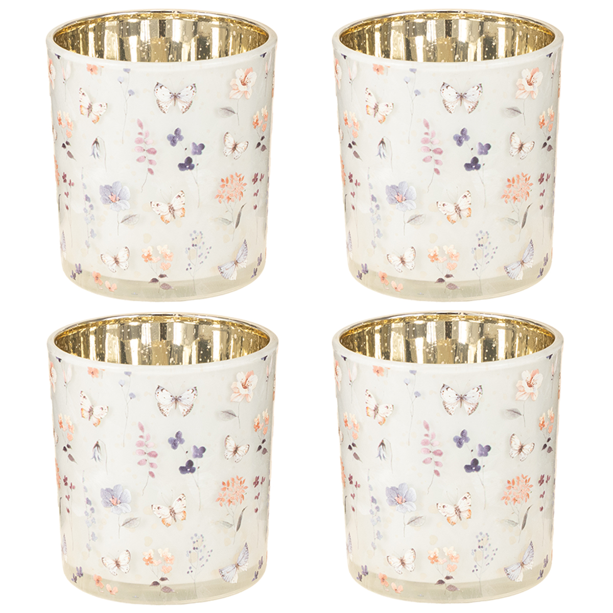 Lanterna decorativa in vetro con motivo a farfalla per eleganti accenti domestici, 8 cm, 4 pezzi