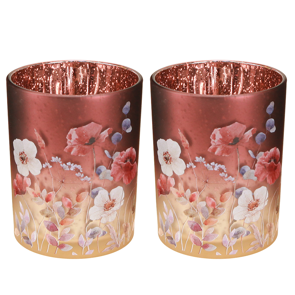 Lanterna decorativa in vetro con motivo floreale per eleganti accenti domestici, 12,5 cm, 2 pezzi