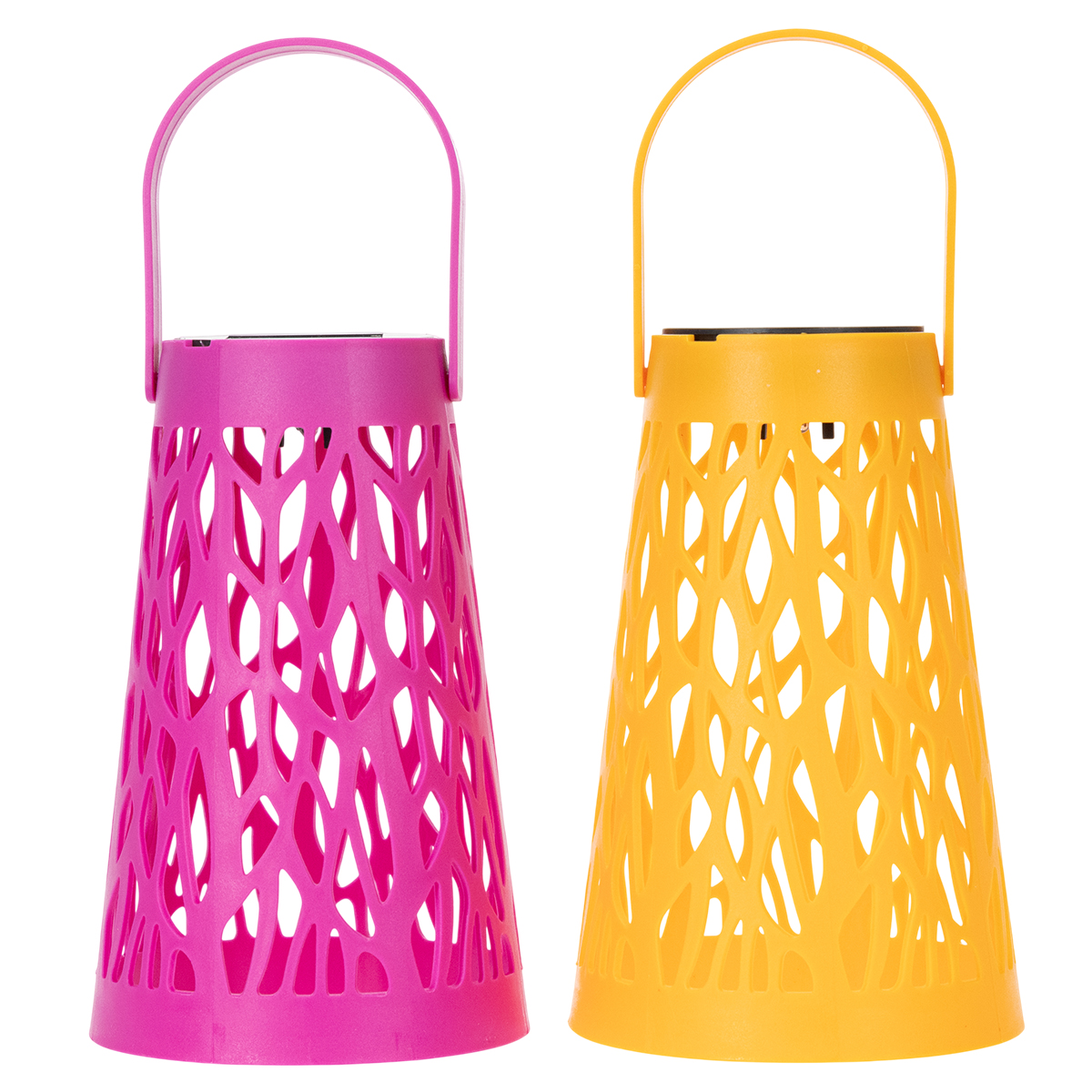 Questo set di due lanterne, una in un allegro rosa e l'altra in un vivace giallo, illuminerà i tuoi spazi esterni. Il look moderno di queste lanterne a LED, realizzate in delicata plastica perforata, si adatta perfettamente a un'atmosfera estiva e si fonde perfettamente con quasi tutti gli stili di giardino. La luce bianca calda emessa dai LED crea un bagliore morbido e invitante, senza abbagliare, rendendo queste lanterne un'aggiunta versatile e apprezzata al tuo arredamento da esterno. Scopri quanto può essere facile far risplendere il tuo giardino!