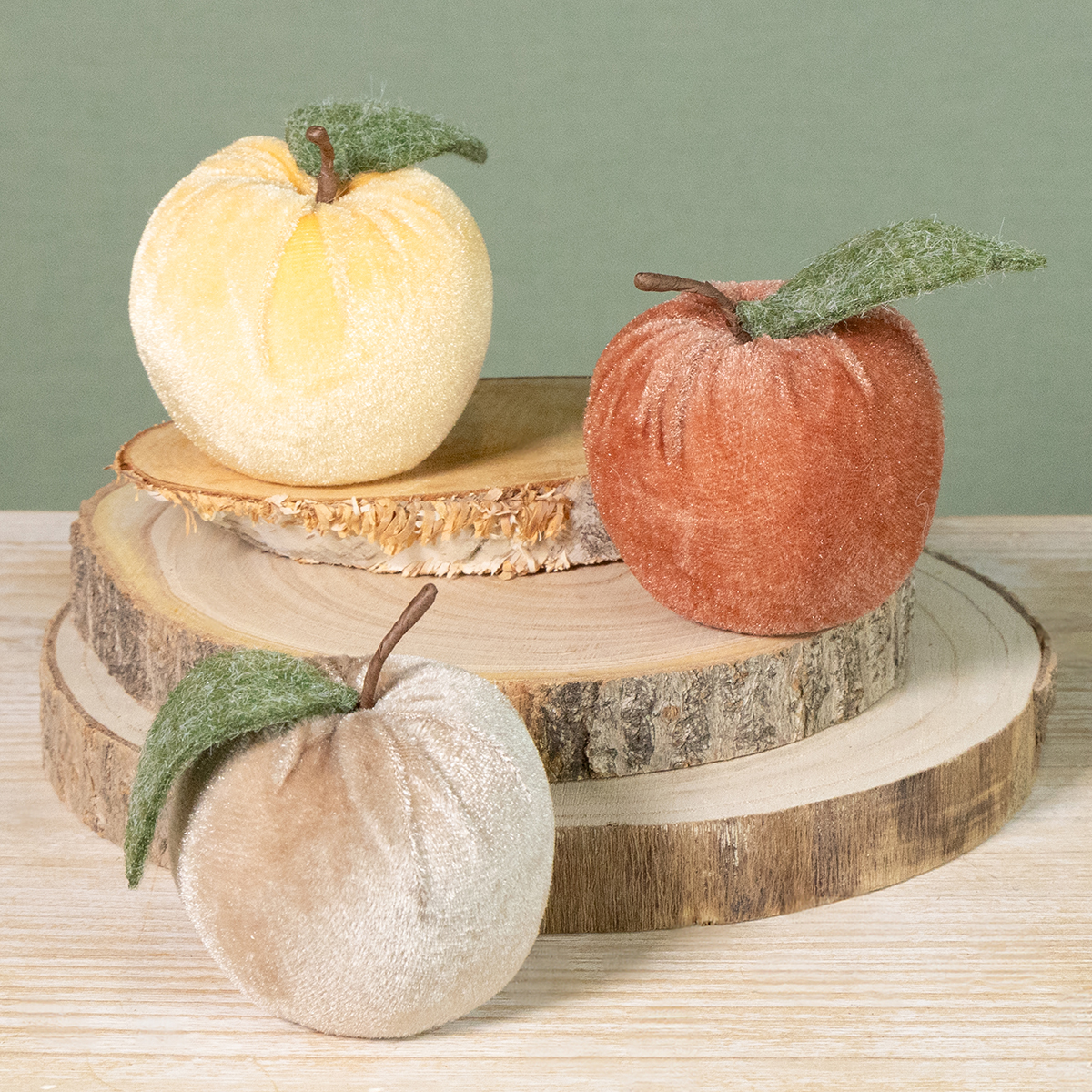 Questa mela decorativa in velluto con foglia in feltro si adatta perfettamente al tuo arredamento autunnale. Esprimi la tua creatività con queste eleganti mele in velluto, realizzate con cura in tre caldi colori autunnali: marrone rossastro, beige e giallo. Ogni mela in velluto artificiale è meticolosamente realizzata in polistirolo rivestito in un morbido tessuto. La lucentezza vellutata e la foglia in feltro verde, unite a un piccolo gambo marrone, completano l'aspetto dettagliato e offrono una squisita aggiunta all'arredamento del tuo soggiorno o alle composizioni autunnali sulla tavola. Che si tratti di un'elegante mensola, di decorazioni per feste stagionali o di sfondi fotografici creativi, la versatilità di queste mele le rende un punto focale del tuo arredamento.