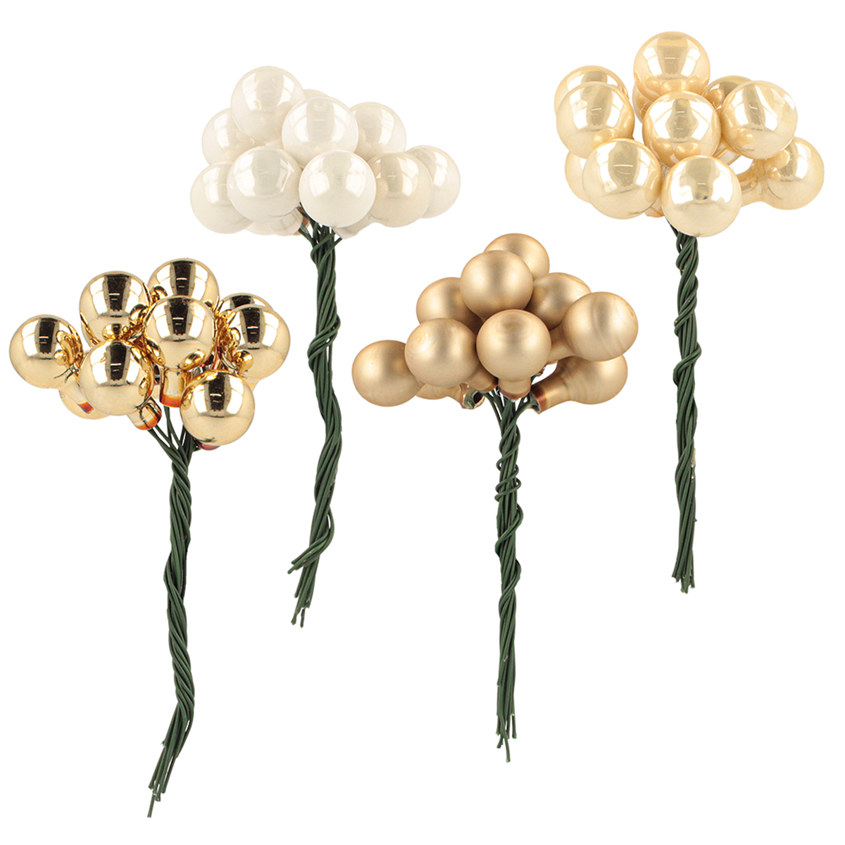 Mini palline di Natale su filo oro, crema Ø1,5cm 140 pezzi