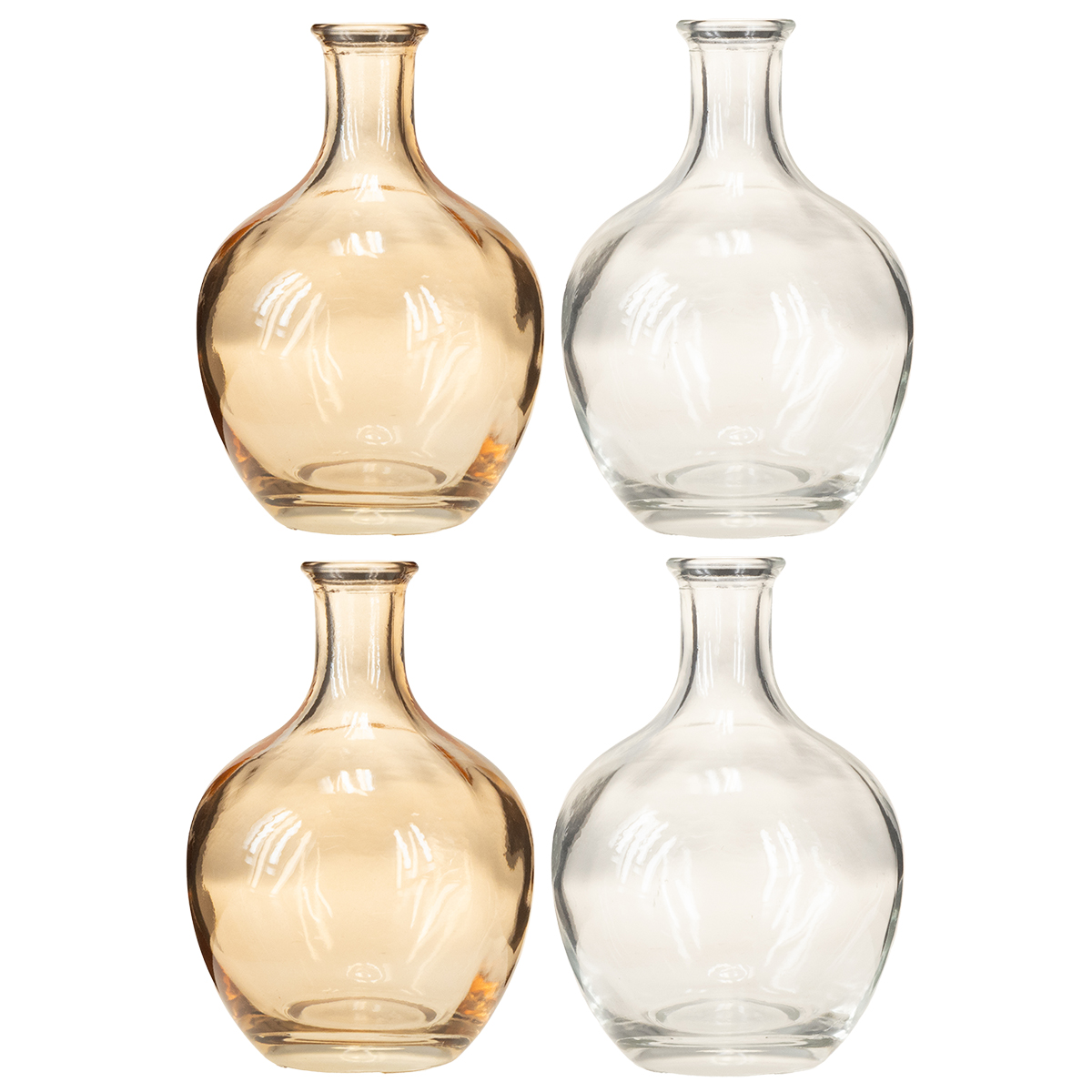 Nome del prodotto: Mini vaso in bottiglia di vetro ambrato e trasparente Ø7,5cm H11cm 4 pezzi