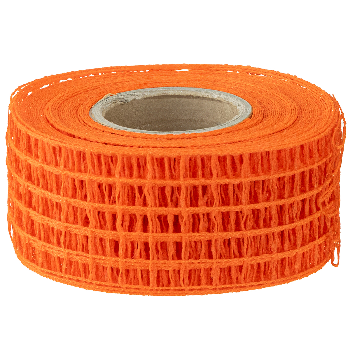 Il nastro reticolare arancione viene offerto come un piccolo rotolo lungo circa 10 metri. Il nastro stesso è largo circa 4,5 centimetri.