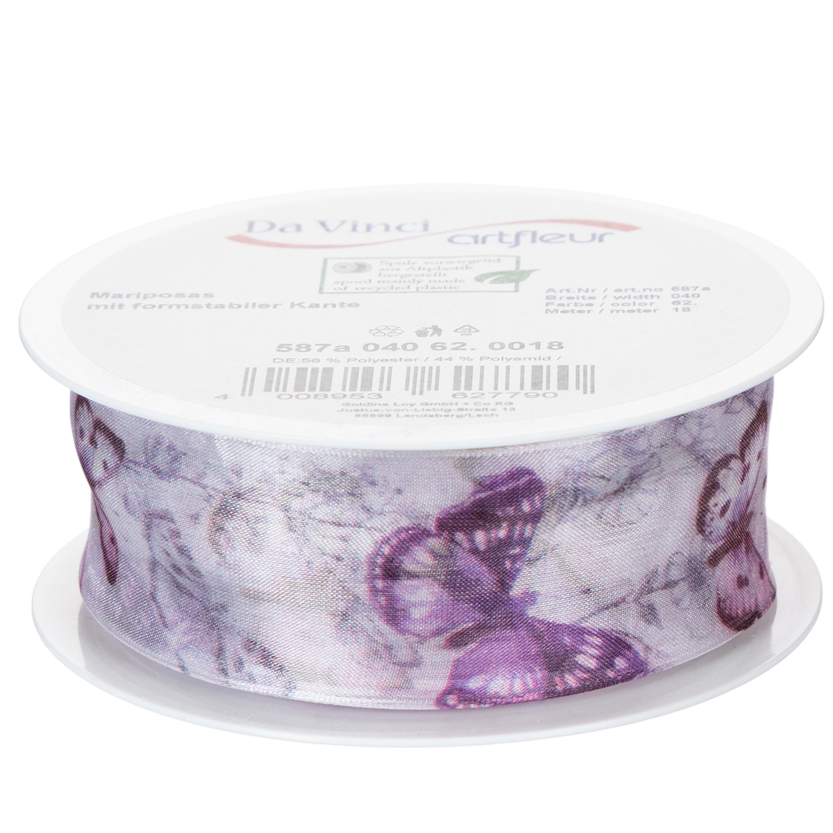 Nome del prodotto: Nastro in organza, nastro in chiffon, farfalle, viola, 40 mm, 18 m