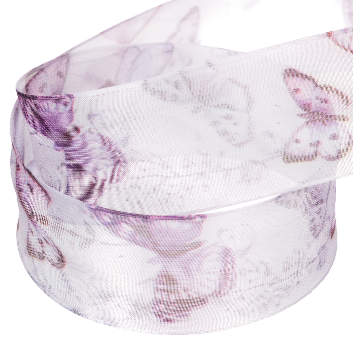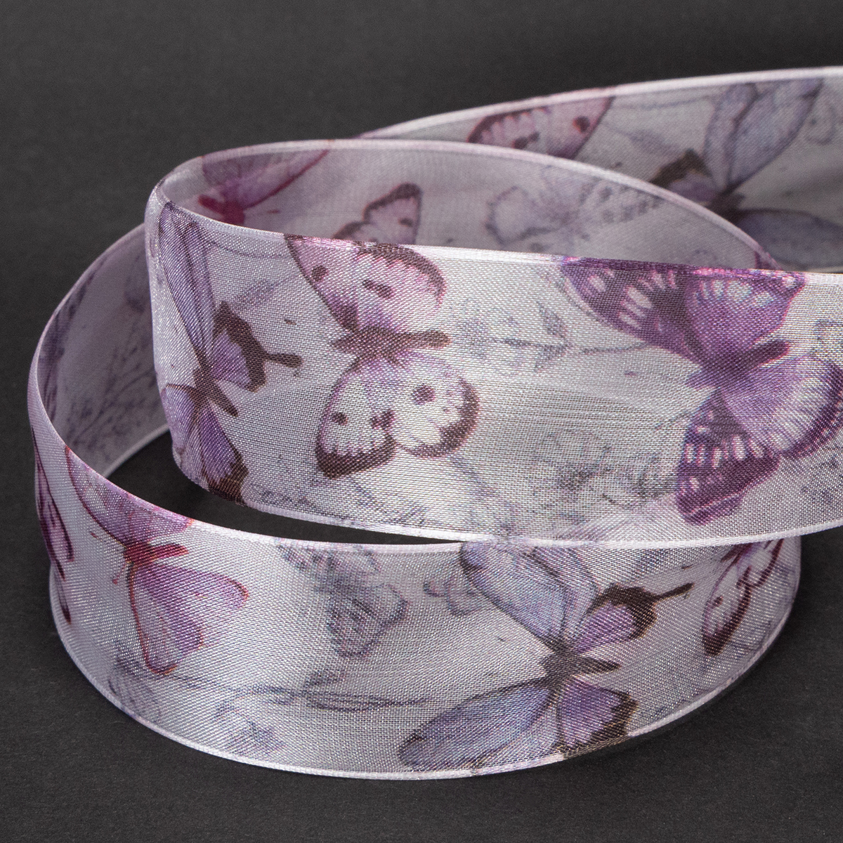 Nastro in organza, nastro in chiffon, farfalle, viola, 40 mm, 18 m