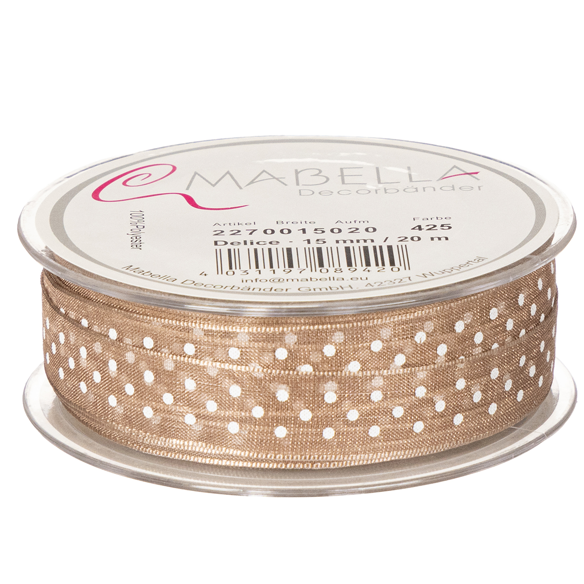 Nome del prodotto: Nastro regalo a pois per decorazioni nuziali eleganti e confezioni creative, largo 1,5 cm, lungo 20 m