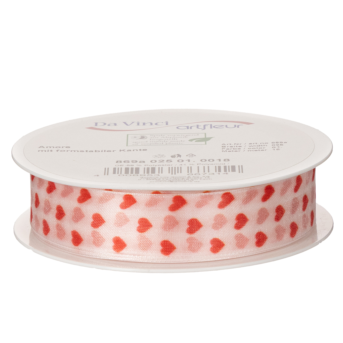 Nastro regalo con cuori, ideale per idee creative di confezionamento e regali personali, largo 2,5 cm, lungo 15 m