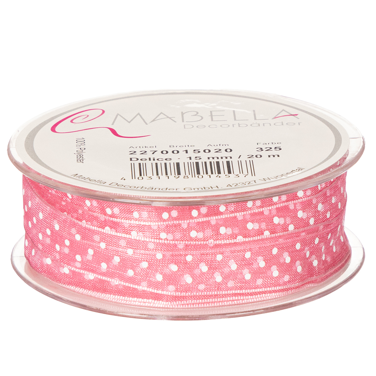 Nome del prodotto: Nastro regalo con un elegante motivo a pois per confezioni festive, largo 1,5 cm, lungo 20 m