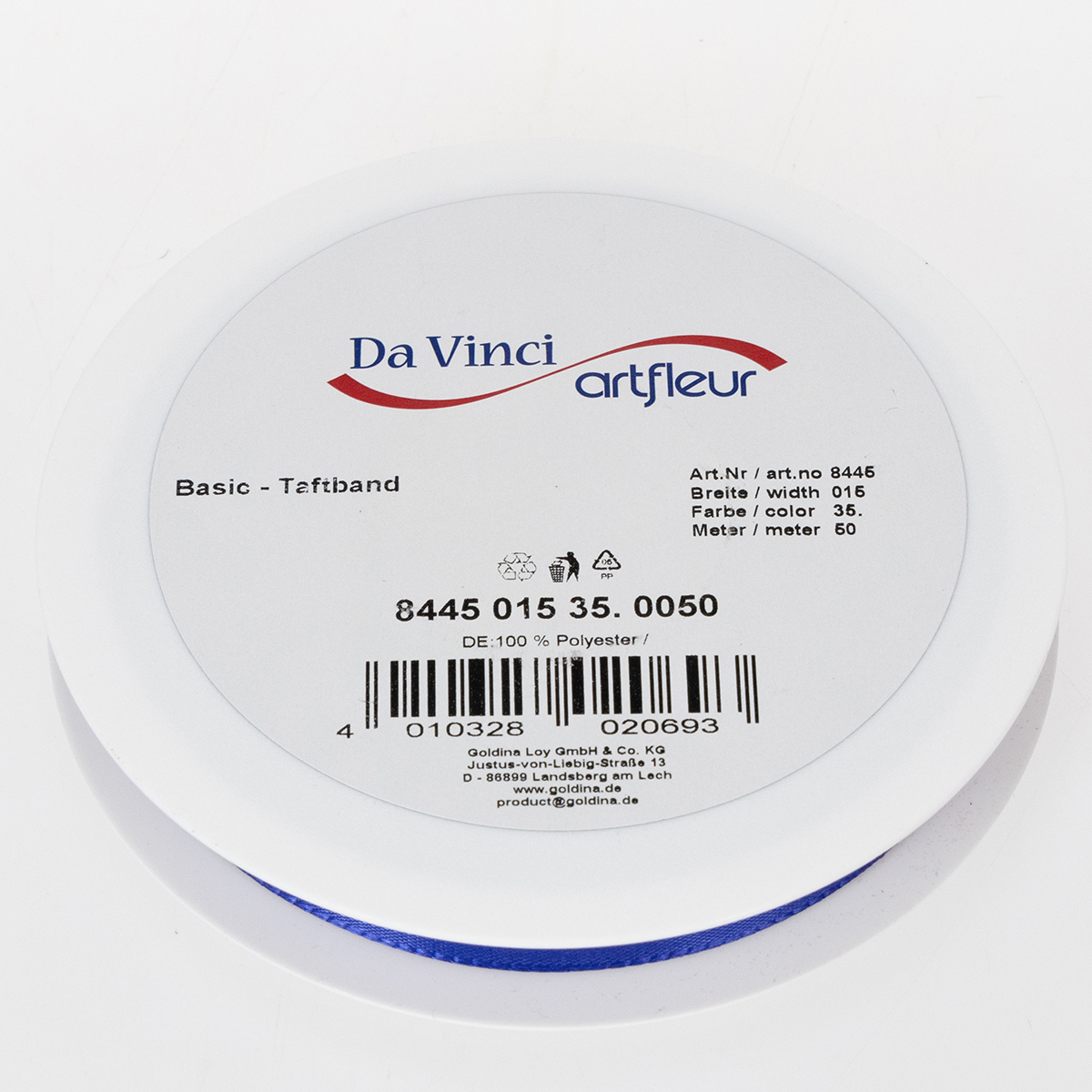 Il grazioso nastro regalo e decorativo di colore blu scuro è largo circa 15 millimetri e lungo circa 50 metri. È realizzato in poliestere al 100% e viene fornito su una comoda bobina di plastica piatta.