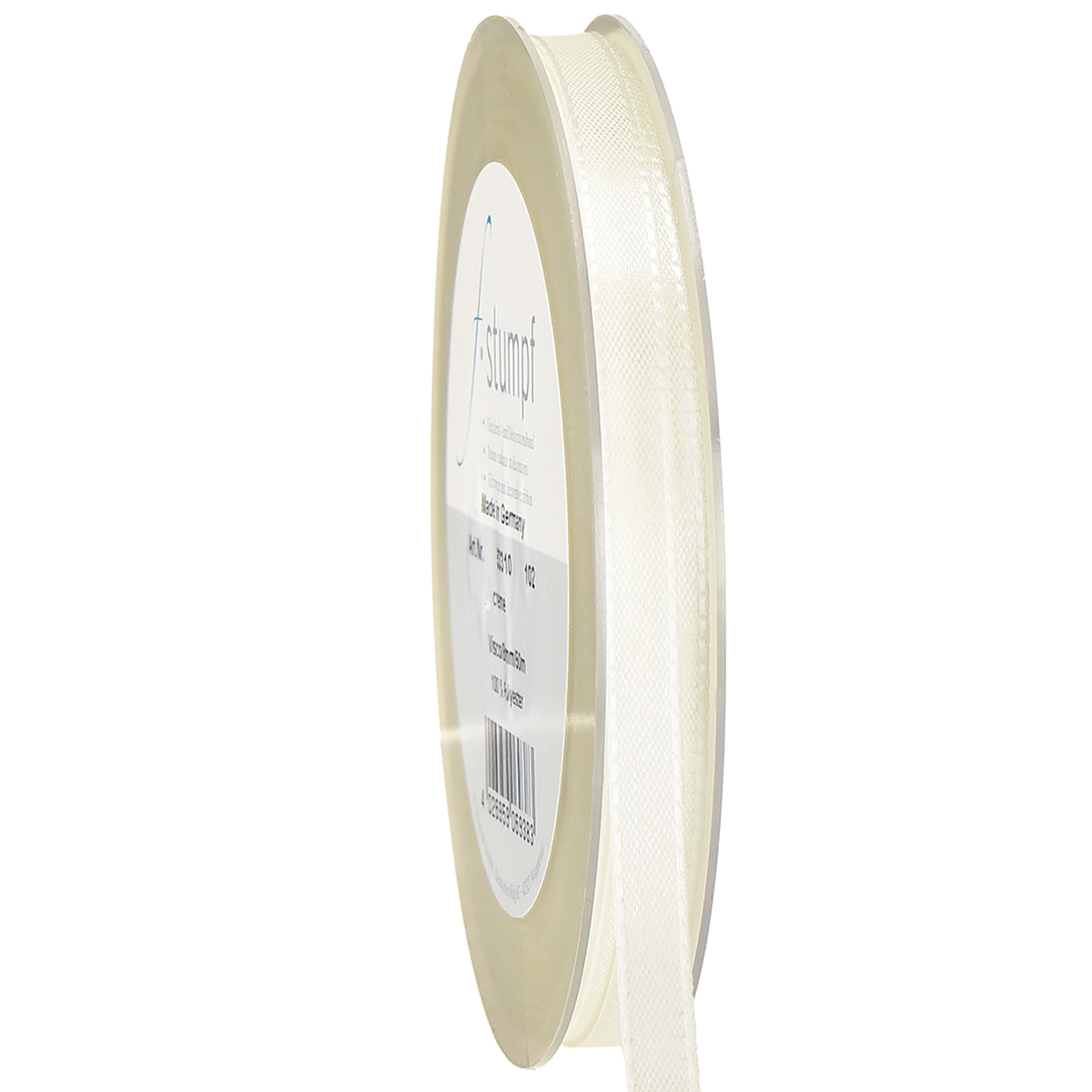 Il nastro regalo e decorazione color crema misura circa 8 millimetri di larghezza e circa 50 metri di lunghezza. È realizzato al 100% in poliammide e arrotolato su una bobina di plastica.