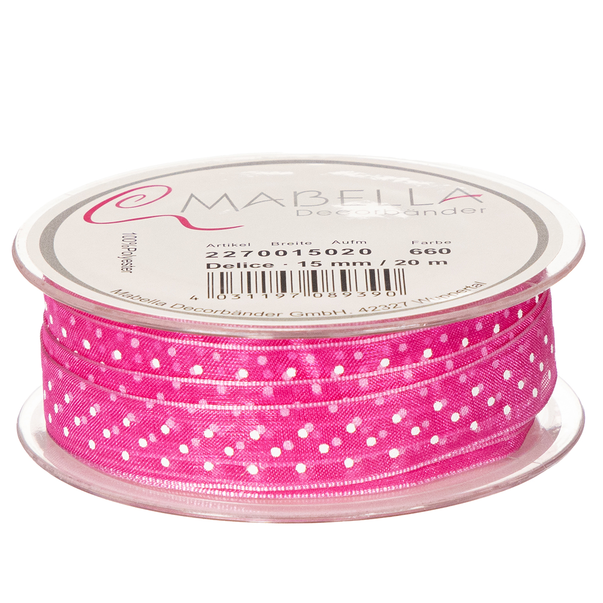 La delicata combinazione di rosa e rosa, completata dall'elegante motivo a pois, conferisce al nastro un fascino romantico e allegro. Il materiale 100% poliestere di alta qualità garantisce una qualità duratura e una brillantezza brillante. E soprattutto: grazie alle sue dimensioni perfette, il nastro è facile da annodare, drappeggiare o decorare. Lasciati ispirare e trasforma semplici oggetti in splendide opere d'arte!