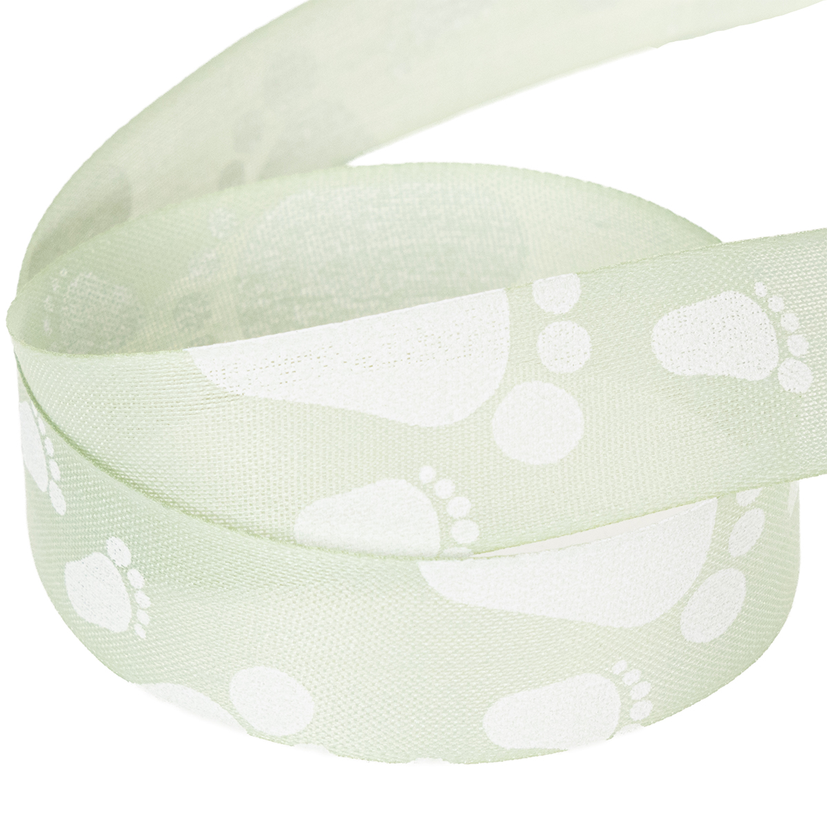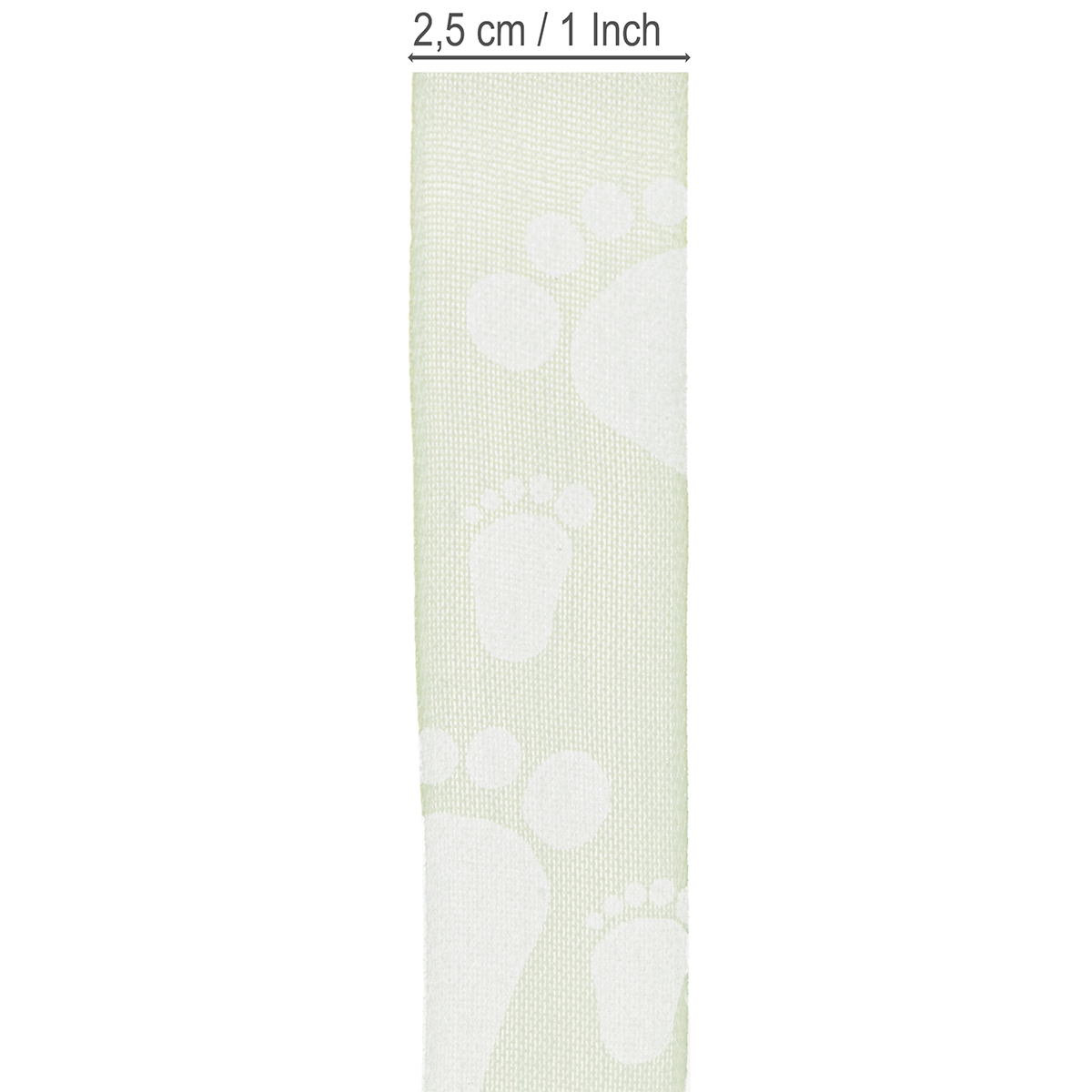 Nastro regalo per battesimo, decorazione piedini neonato, verde, 25 mm, 16 m