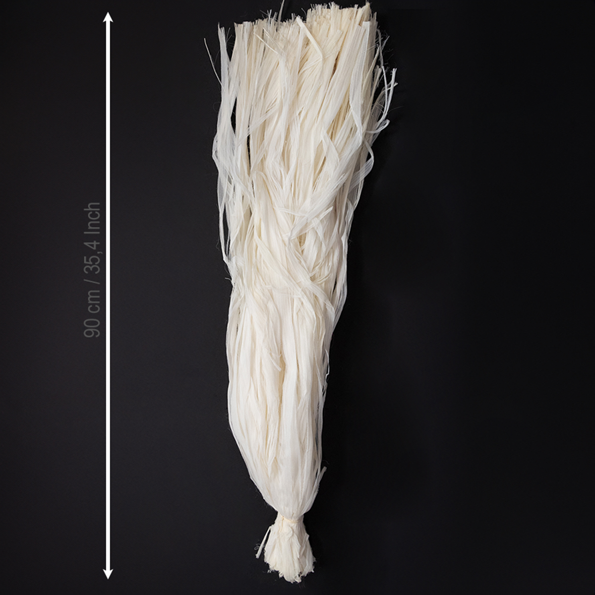 Il nastro decorativo naturale prende il nome dall'aspetto scheletrico della fibra naturale, che è costituita esclusivamente dalle nervature delle foglie del materiale naturale.