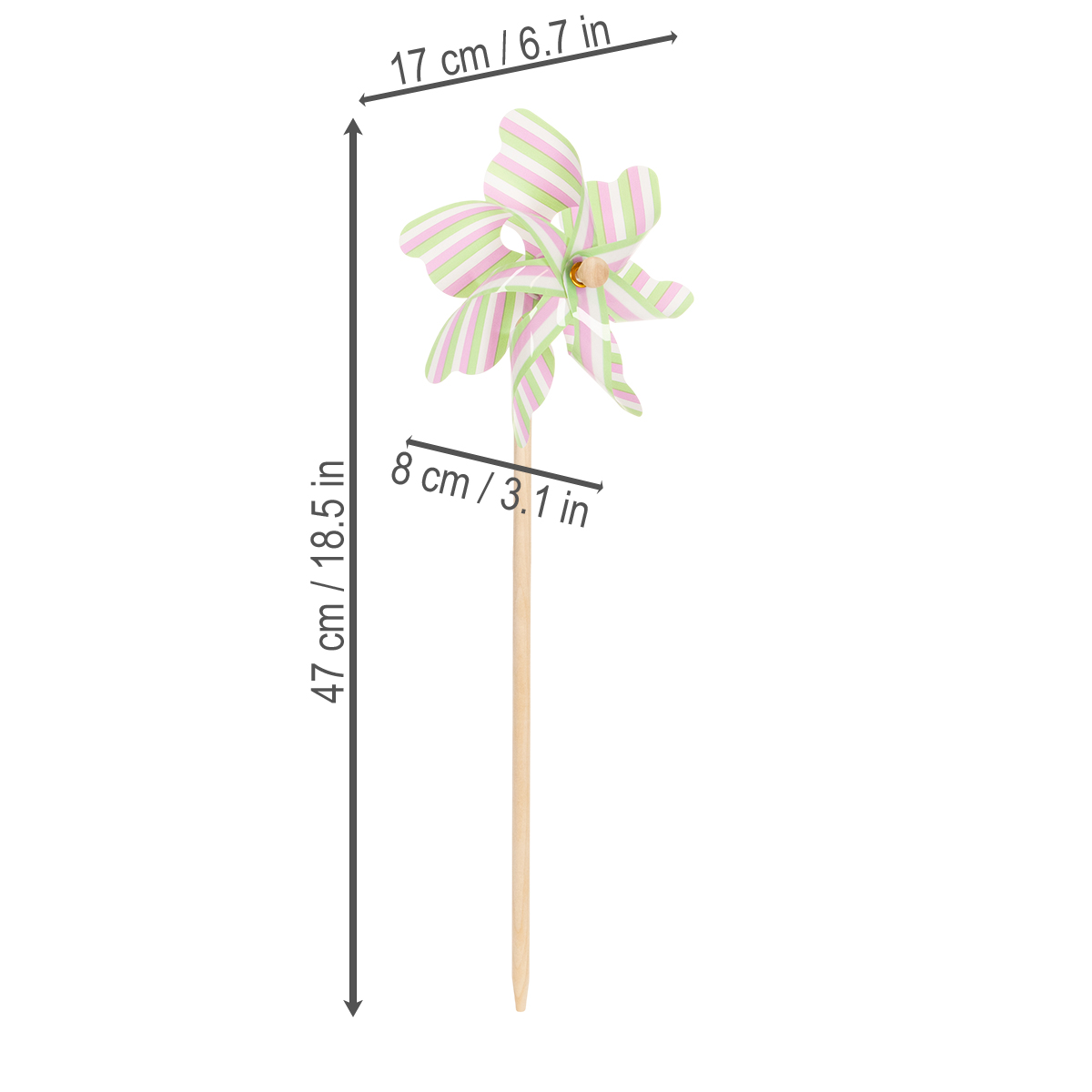 Nome del prodotto: Paletto da giardino a forma di mulino a vento, decorazione attraente per patio, giardino e balcone, 47 cm, 3 pezzi