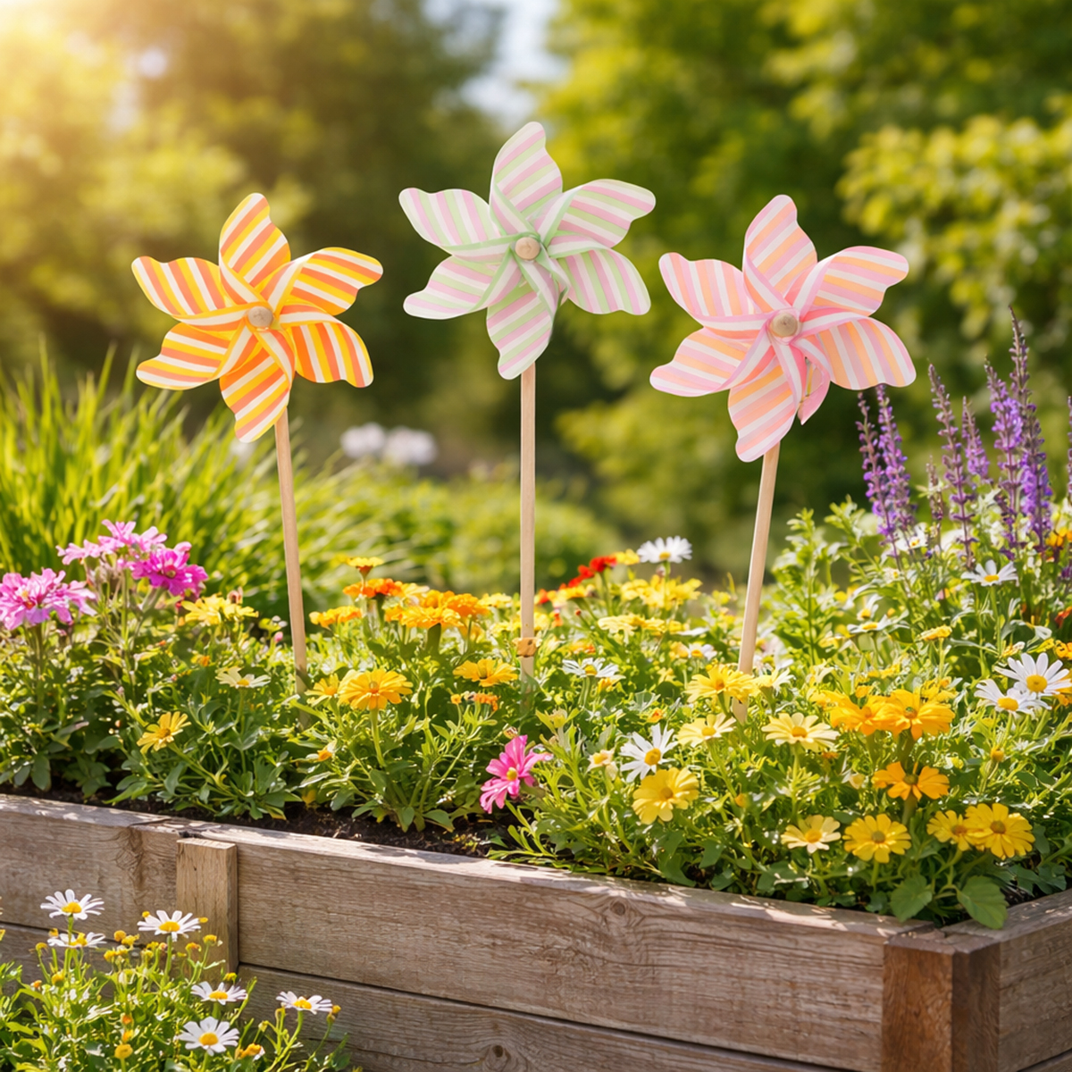 - Set composto da 3 mulini a vento a righe in delicati colori pastello