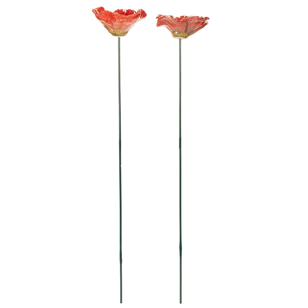 Questi sostegni da giardino a forma di papavero sono realizzati in ceramica di alta qualità e colpiscono per la loro lavorazione artigianale, curata nei minimi dettagli e meticolosa. I vivaci e luminosi fiori rossi, con un diametro naturale di 8 cm, cattureranno sicuramente l'attenzione. Con un'altezza di 42 cm, questi sostegni in ceramica si integrano perfettamente in aiuole, bordure o contenitori più grandi. Le delicate forme dei fiori offrono utilizzi versatili, sia come sofisticato contrasto con il verde che come armoniosa aggiunta a una composizione floreale esistente.