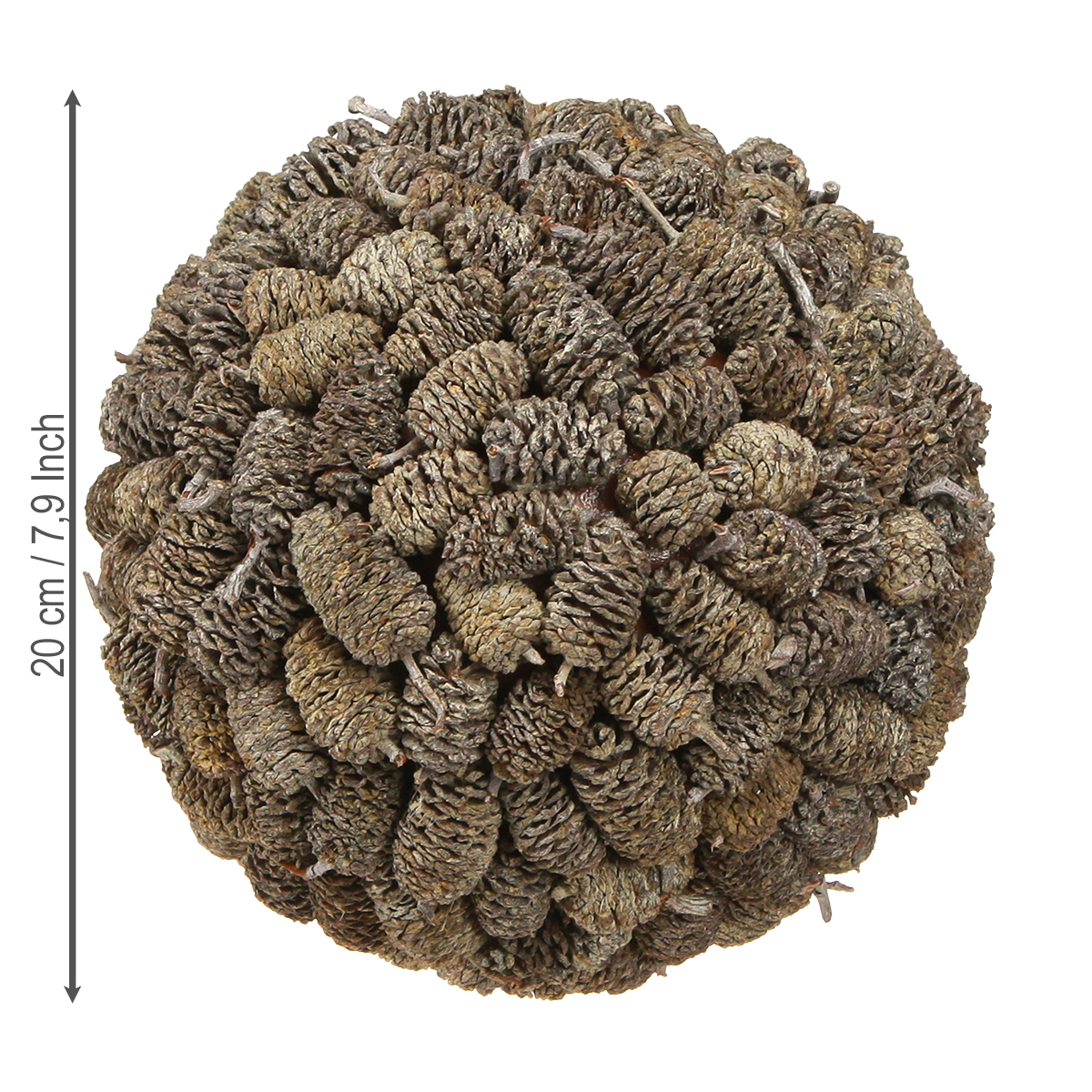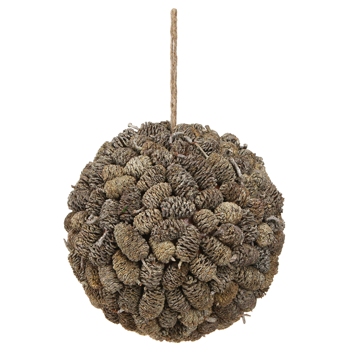 Palla decorativa di pigne di ontano da appendere, sbiancata, 20 cm