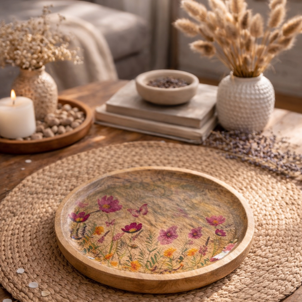 - Piatti in legno di alta qualità con motivo a fiori e farfalle
