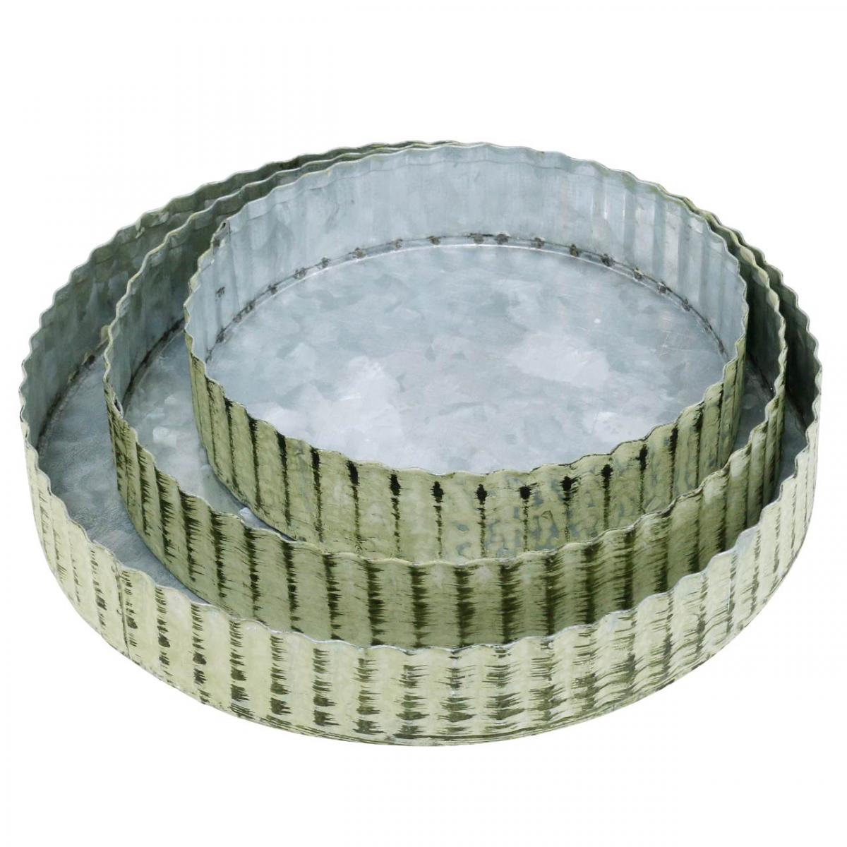 Piatti in metallo per decorare, decorazione da tavola, portacandele tondo argento, verde shabby chic Ø14/16,5/19,5 cm H3,5 cm set da 3