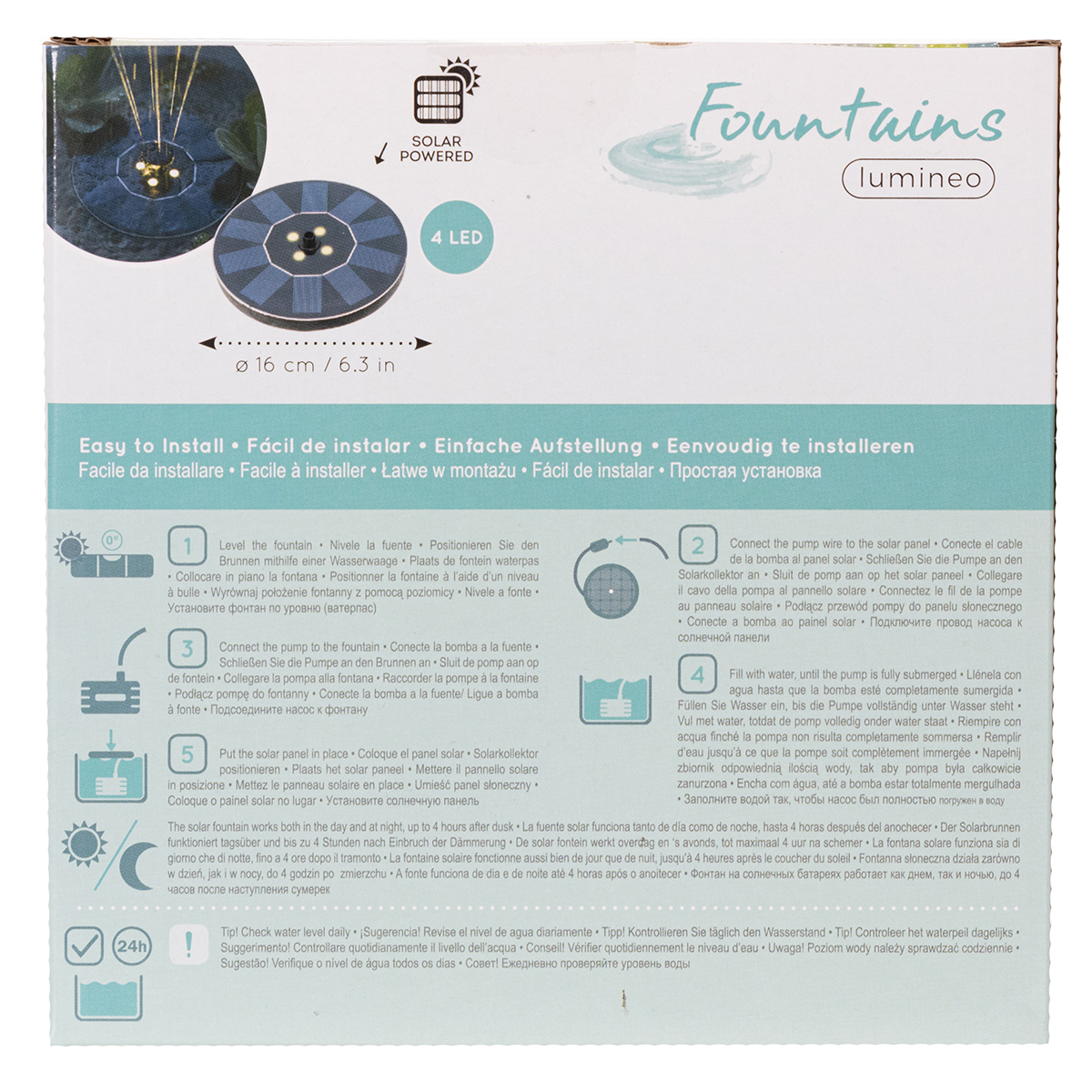 Basta fissarla, godersi la meravigliosa illuminazione LED bianca calda e il gioco è fatto! Grazie al suo elegante design nero, la pompa solare si integra perfettamente in qualsiasi stile di giardino, dal minimalismo moderno a un ambiente più tradizionale. Stupisci i tuoi ospiti alle feste in giardino o crea la tua oasi di tranquillità. Con un diametro di 16 cm, la pompa solare è compatta ma cattura l'attenzione, anche di notte.