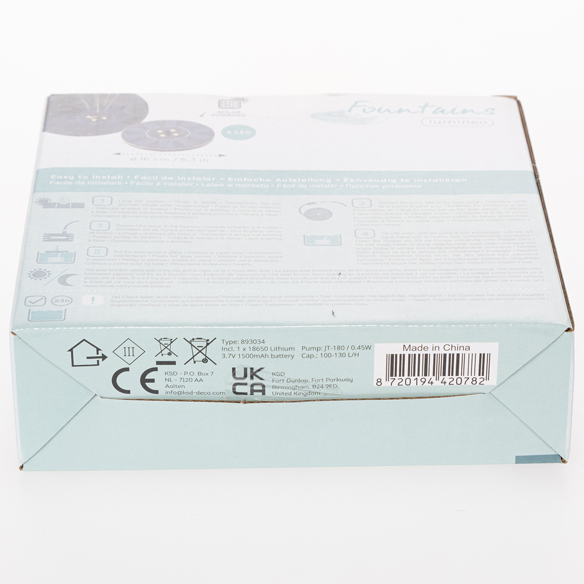 Con un diametro di 16 cm, è perfetta per laghetti da giardino di piccole e medie dimensioni, vasche di zinco o giochi d'acqua artificiali. Immagina come il dolce suono dell'acqua arricchisca la tranquillità del tuo giardino. E la parte migliore? Grazie alla batteria ricaricabile integrata, la pompa solare funziona anche quando il sole non splende direttamente. È la combinazione ideale di funzionalità, estetica e sostenibilità!